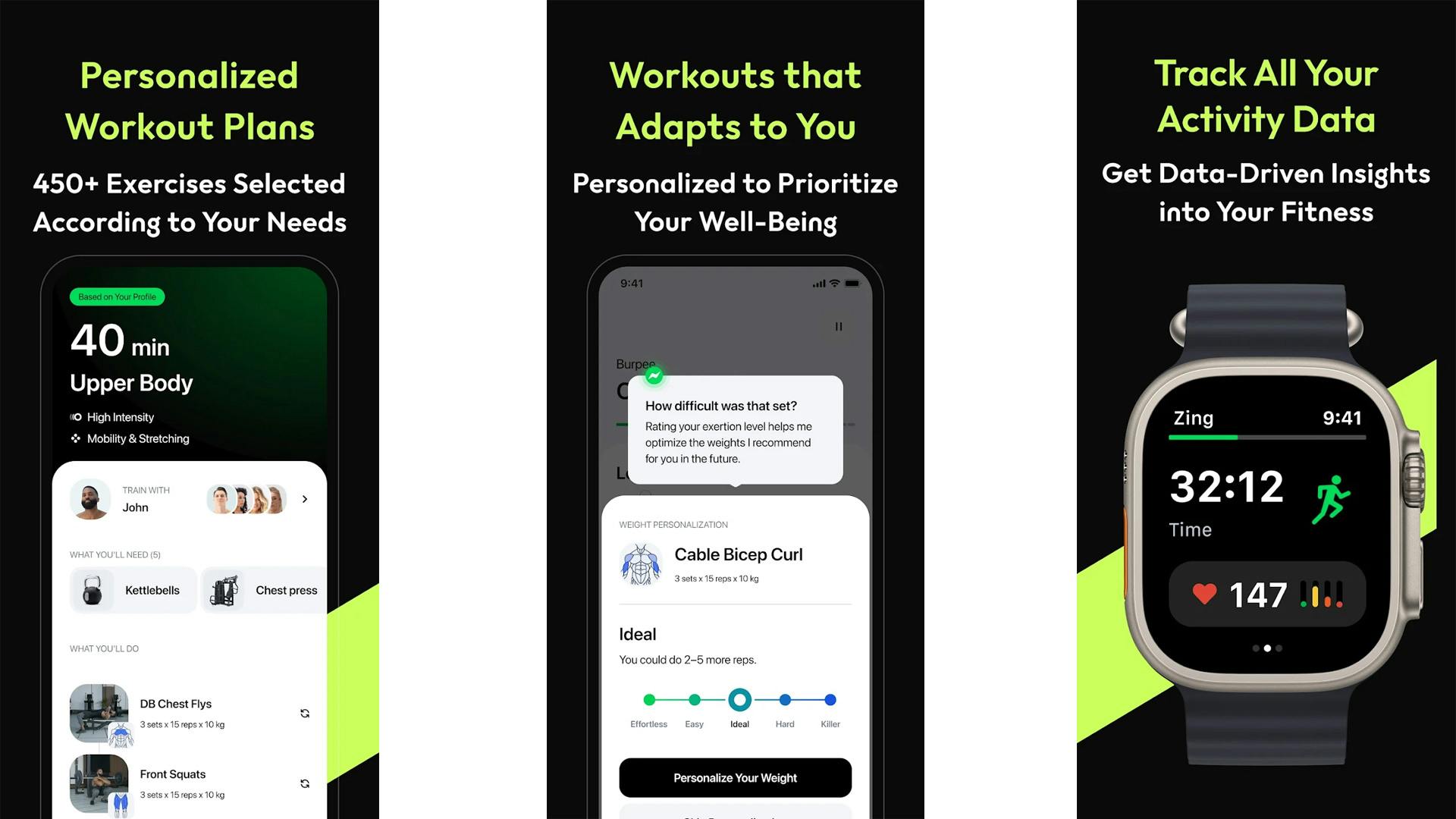 Tot slot kijken we nog even naar Zing. Deze app biedt verschillende soorten oefeningen aan en houdt daarbij rekening met je omgeving (of locatie). Zing kan bovendien in realtime je houdingen corrigeren wanneer dat nodig (net als een echte instructeur) en kan op basis van een simpele test, die vijf minuten duurt, achterhalen wat je sportprestaties zijn. Het nadeel van Zing is dat het heel veel data verzamelt en nodig heeft, waar niet iedereen zich prettig bij voelt – maar dit zou een reguliere trainer ook doen. Daardoor krijg je wel een van de meest uitgebreide fitnessapplicaties van dit moment.