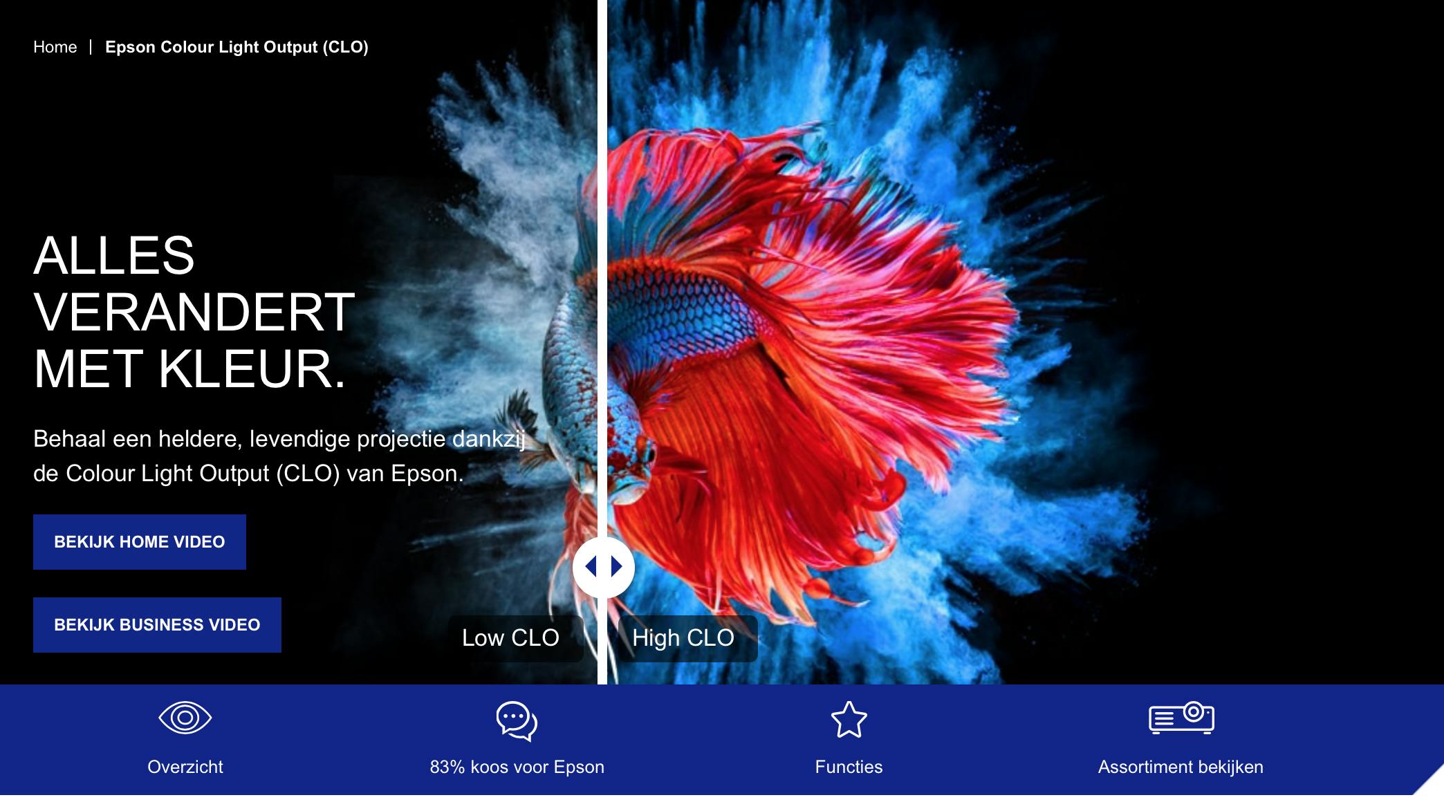 Als je kiest voor de juiste projector, is het projecteren van heldere kleuren en beelden geen enkel probleem. Projectoren die gebruikmaken van 3LCD technologie, waar Epson de uitvinder en patenthouder van is, bieden een gelijke Colour Light Output (CLO) en White Light Output, hetgeen betekent dat de lichtopbrengst bij het projectoren van kleuren (vrijwel altijd dus) net zo hoog is als bij de weergave van enkel wit licht. Hierdoor kun je van extreem heldere en dynamische projecties genieten tijdens je vergadering. Ook heb je geen last van reflecties of ongunstige invalshoeken, iets wat met een flat panel display wel het geval is.