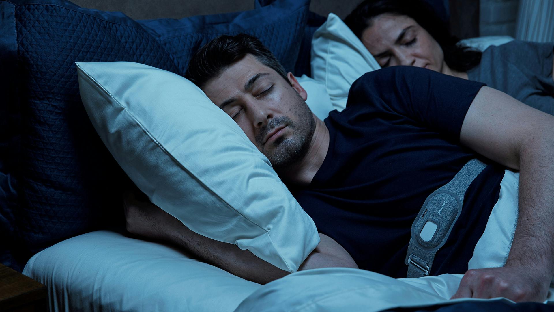 Deze band van Philips draag je om je middel en de sensor in het midden detecteert tijdens het slapen wanneer je op je rug ligt. Het apparaatje vibreert dan subtiel, zodat je even wakker wordt om op je zij te rollen. Daarna pas stopt 'ie weer met trillen.