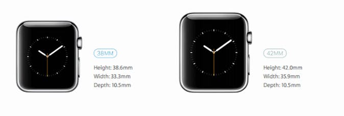 De Apple Watch is in een 38mm of 42mm uitvoering te verkrijgen