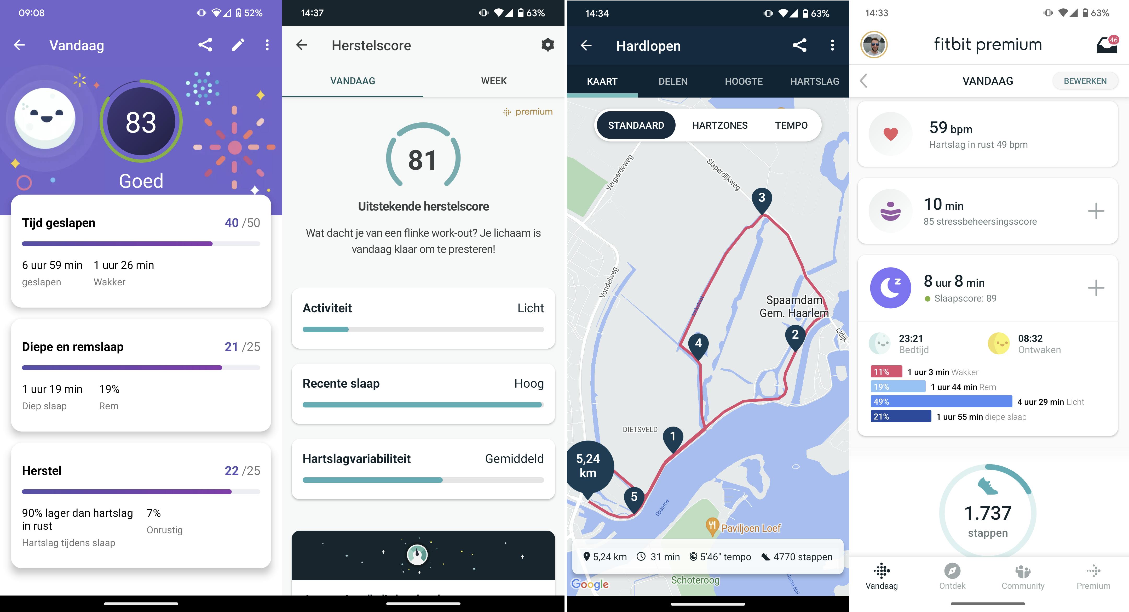 Bovendien komt het nieuwe besturingssysteem met concessies. Bijvoorbeeld de muziekbediening en Google Assistent-functie zijn gesneuveld. De beperkte integratie met andere apps en diensten is nu volledig verdwenen. Al je data zit bij Fitbit. Als je graag je data koppelt met een andere dienst als Strava, Komoot, Runkeeper of andere gezondheids- en sport-app, dan is Fitbit ongeschikt. Dat is vervelend, maar het wordt erger. Fitbit zet steeds meer in op Fitbit Premium, dat een heilloze koers vaart door je gegevens en -analyse achter een betaald abonnement te plaatsen. Jouw data mag je dus alleen gebruiken als Fitbit maandelijks betaalt en is alleen te gebruiken in de Fitbit-app.
