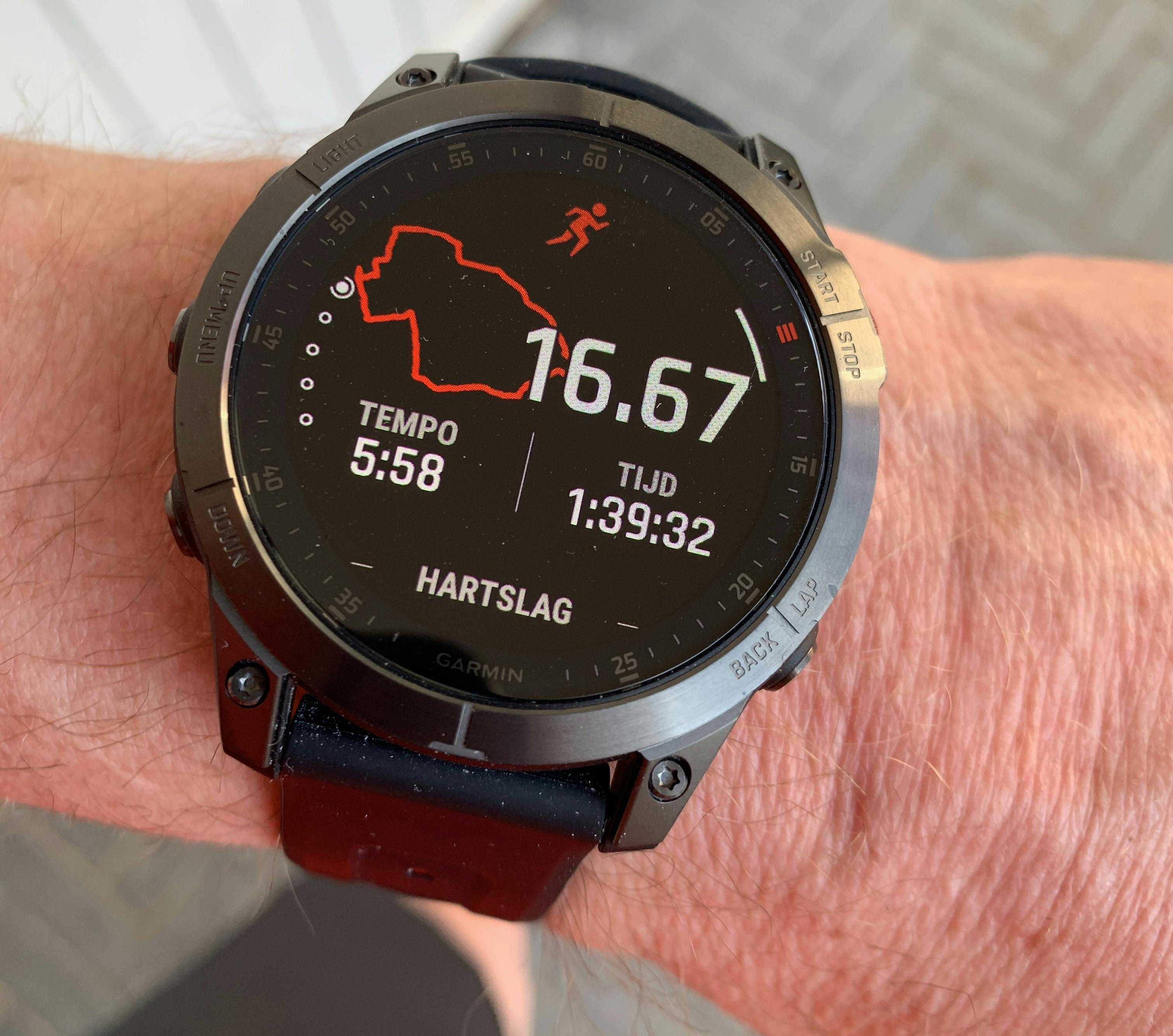 Pas wanneer je de Epix echt fors belast en bijvoorbeeld continue muziek afspeelt op een draadloos verbonden headset, loopt de accuduur terug tot 10 uur, maar hoe realistisch is dat. Bovendien kun je ook dan de accuduur enorm verlengen door bijvoorbeeld het scherm alleen in te schakelen wanneer je het horloge naar je toe draait, het beeld automatisch uit te schakelen tijdens de nacht en ook al door gewoon een donkere watchface te gebruiken, zoals Garmin af fabriek ook doet.