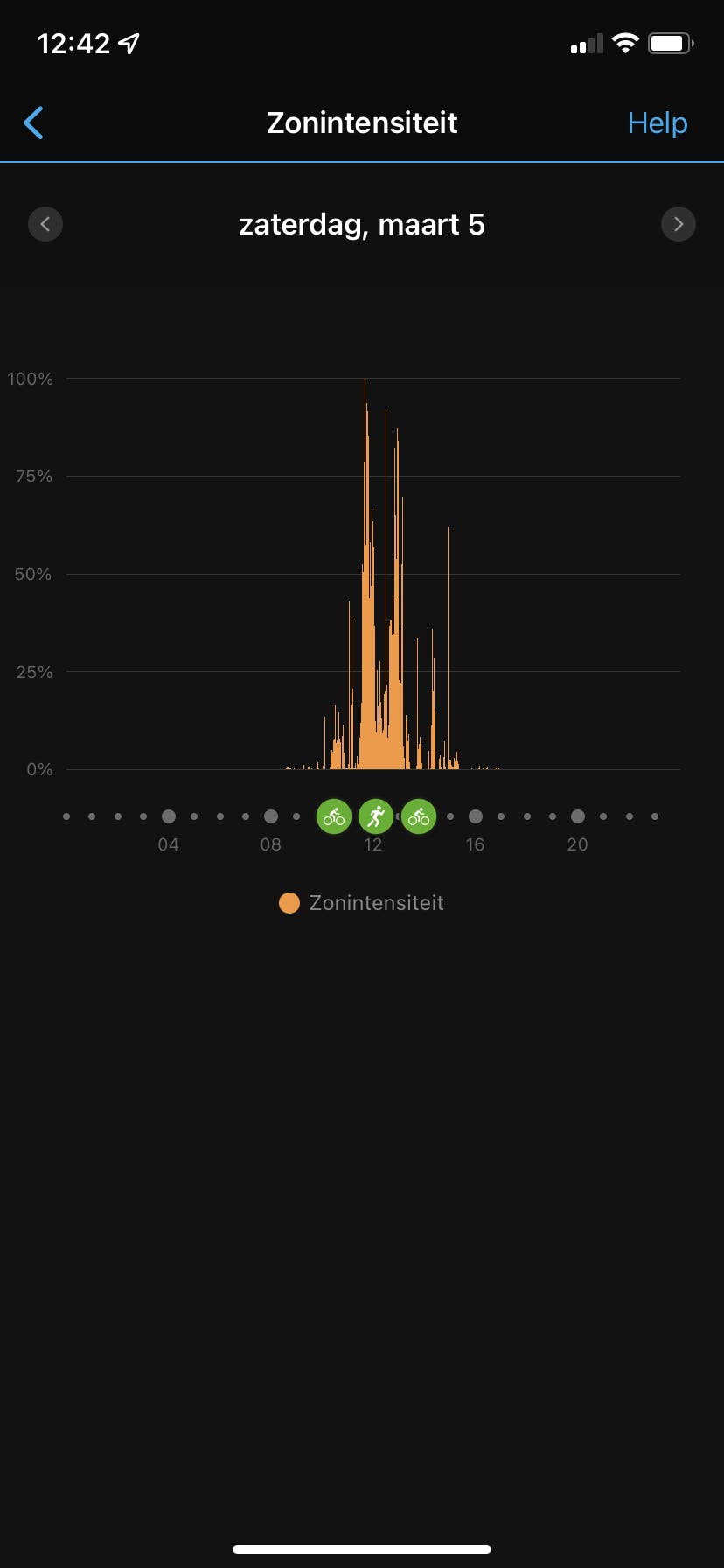 Bij normaal gebruik als horloge met binnenkomende berichten en soms een sportieve workout, gaat de batterij van de Fenix 7 Sapphire Solar zeker 14 dagen mee zonder opladen. Ga je op een hike van meerdere dagen en speel je muziek vanaf de Garmin, dan neemt dit af tot een dag of minder. Energie besparen is op vele manieren mogelijk bijvoorbeeld door de schermtime-out te verkorten, de weergave van telefoonmeldingen uit te schakelen of zelfs geheel bluetooth, maar ook minder ingrijpend door de satellietnavigatie te beperken tot alleen GPS.