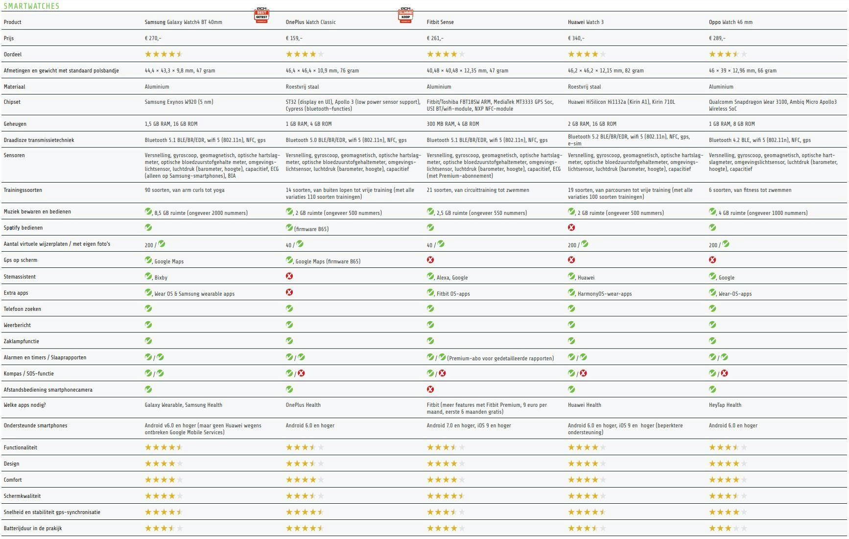 Bekijk hieronder alle testresultaten. Daarna gaan we op de individuele smartwatches in.