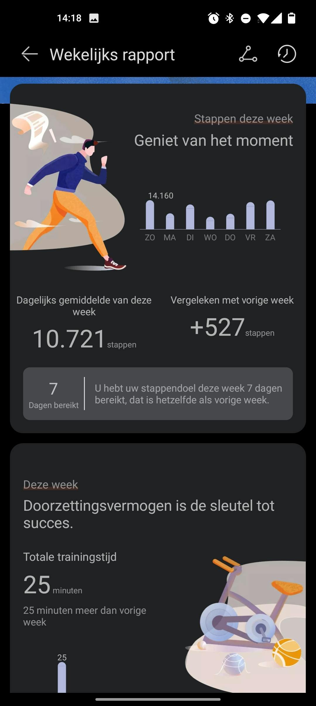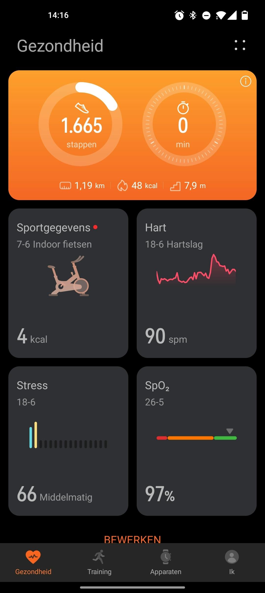 Sommige functies komen echter minder nuttig over. Zo kan het horloge je huidtemperatuur meten, dus de temperatuur van het oppervlak van je huid. Afkoelen en opwarmen doet je lichaam onder andere via de huid en daarom geeft je huidtemperatuur inzicht in hoe (goed) je lichaam dit regelt. De functie is standaard uitgeschakeld en alleen te activeren via de smartphone-app, die aangeeft dat de accuduur van het horloge terugloopt als je de metingsfunctie activeert. Als ik na twee weken gebruik het dagelijks verloop van mijn huidtemperatuur bekijk, zou ik niet weten wat ik met de data wil of kan doen. Ik heb de functie daarom maar weer uitgeschakeld.