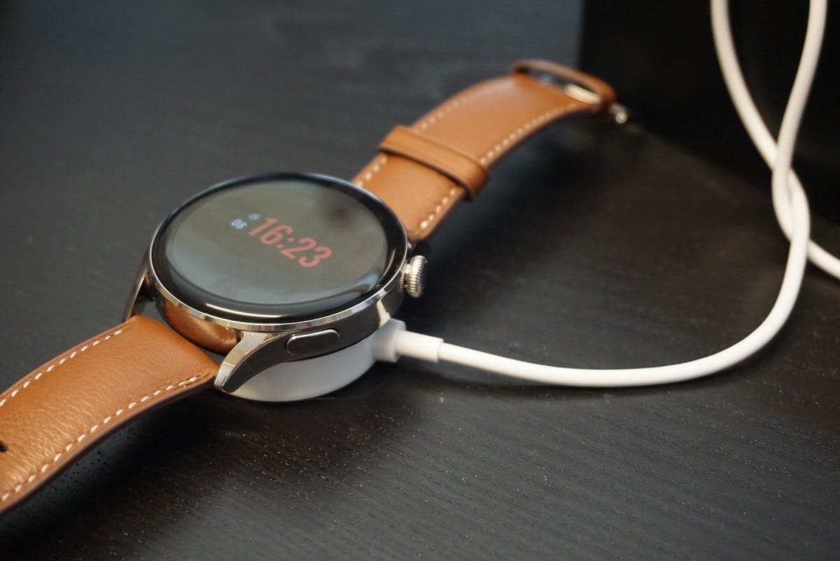 Opladen doet de Huawei Watch 3 via een draadloze Qi-oplader. Huawei levert een kabel met rond, magnetisch oplaadplaatje mee. Je kunt het horloge ook op een andere Qi-oplader (liefst met een output van 10 Watt) leggen of op de achterkant leggen van een telefoon die omgekeerd draadloos opladen ondersteunt. De oplaadmethoden doen denken aan die van de concurrentie.