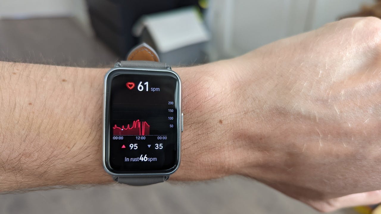 Wat nog meer direct opvalt is het fraaie scherm waarmee Huawei zijn smartwatch heeft uitgerust. Het rechthoekige amoledscherm heeft een diagonaal van 1,74 inch (4,4 cm). Het scherm is iets langwerpiger dan een Apple Watch, waardoor de breedte van je pols efficiënter benut wordt. Overigens een prima formaat voor erg dunne polsen.
