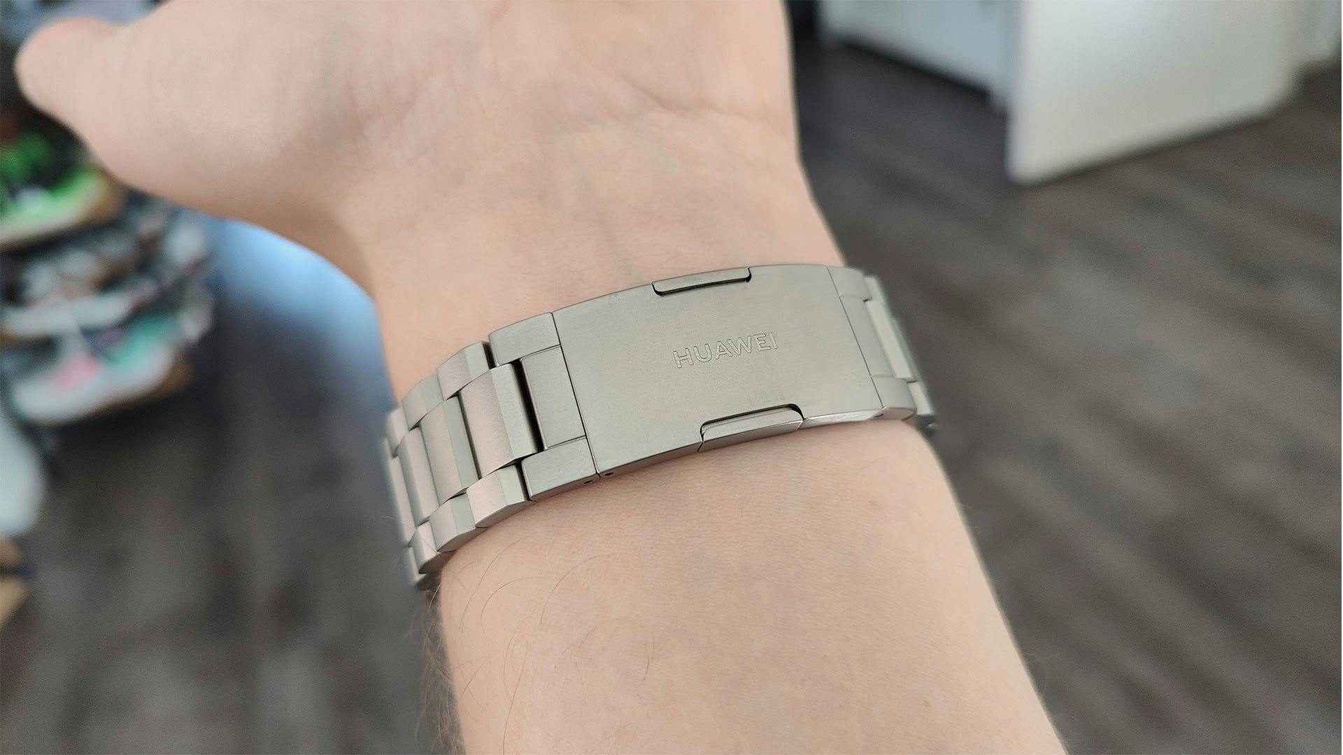 De kast van titanium heeft een gepolijste afwerking, met aan de onderkant (het deel dat op je huid rust) een ceramische laag. Het saffierglas bovenop beschermt de Huawei Watch GT 3 Pro van krassen en andere beschadigingen, waardoor het horloge over het algemeen flink scoort op het gebied van duurzaamheid.