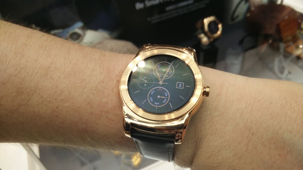 De G Watch Urbane is mooi. Er zitten fraaie watch faces (achtergrondjes) op, en de rand is van goud of zilver. Bovendien is het bandje van echt leer, wat er ook erg goed uitziet. Tijdens het Mobile World Congress in Barcelona mochten we even met het horloge aan de slag... en wilden we hem stiekem nooit meer af doen.