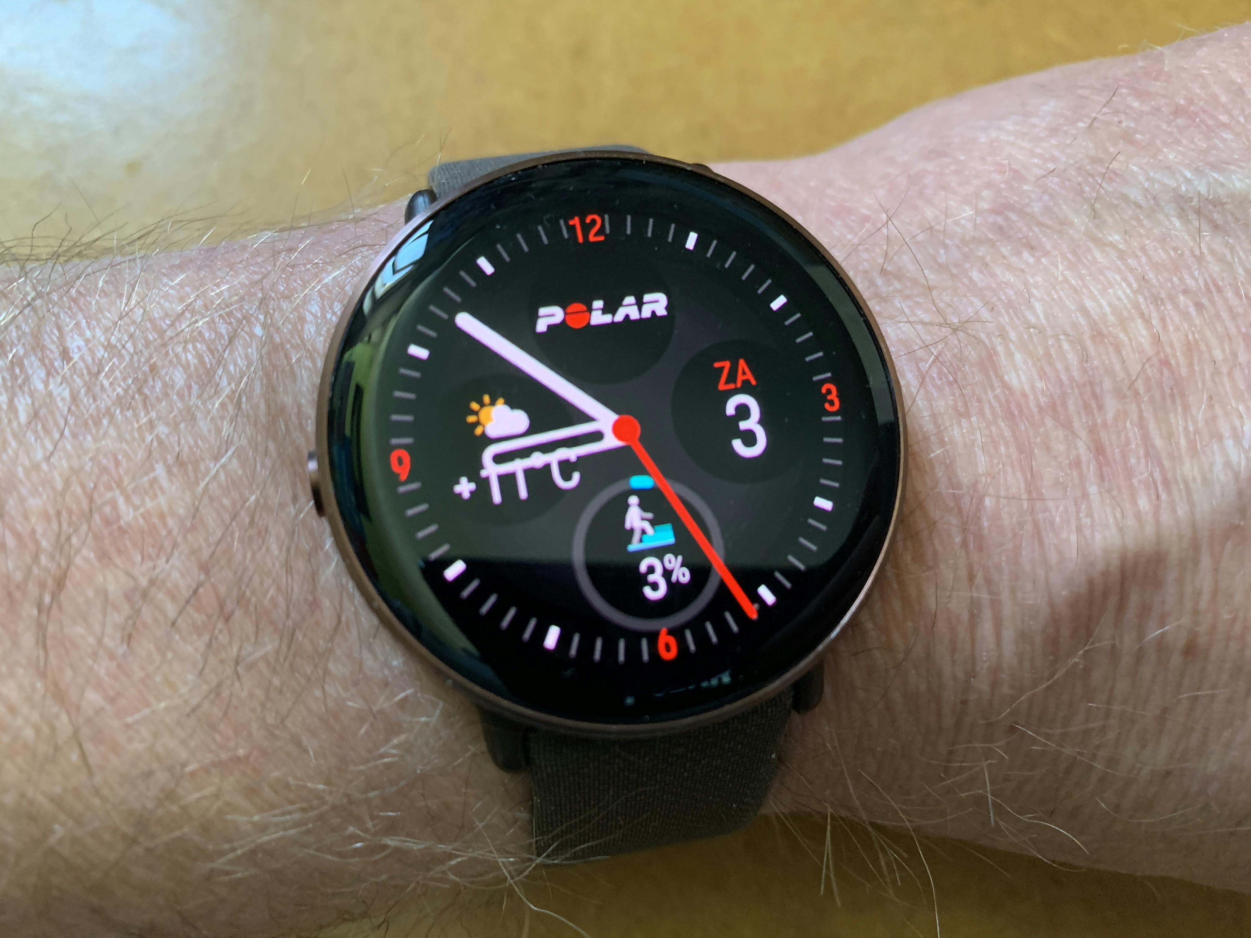 De Polar Ignite 3 beschikt over een mooi 416 x 416 pixels scherp AMOLED-scherm. Om de batterij te besparen schakelt het kort na elke aanraking of moment dat het horloge opmerkt dat er gekeken wordt, terug in een standaard stand waarop alleen heel licht de klok en de wijzers te zien zijn. Geen always-on dus maar prima voor het dagelijks gebruik.