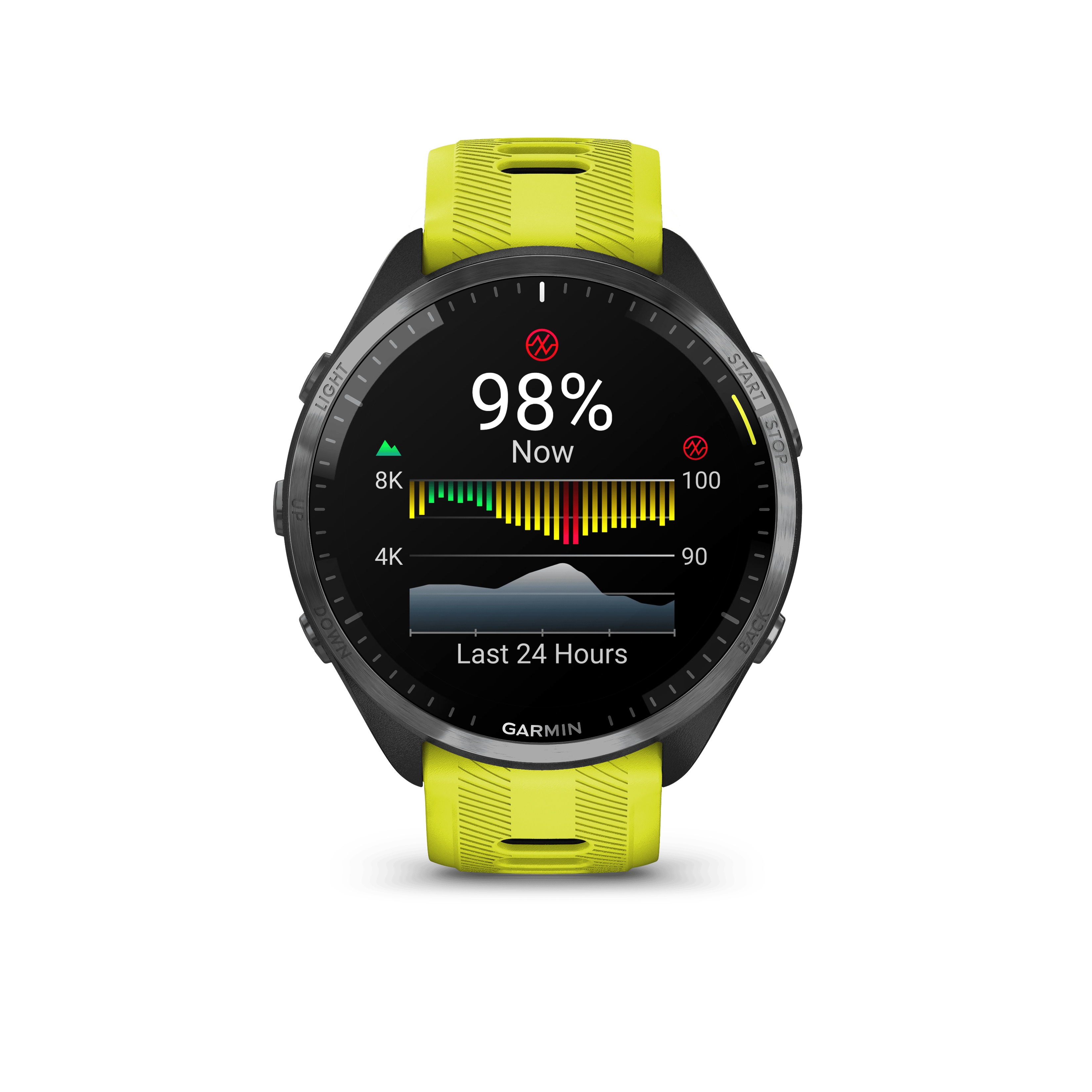 Met al zijn sensoren én de metingen gedurende eigenlijk de hele dag, is het net of je een dokter aan de pols hebt. En gezondheid is ook waar Garmin in navolging van anderen zoals Apple en Fitbit steeds meer op inzet, meer dan alleen op sporten. De Forerunner 965 meet de hartslagvariatie (HRV, het verschil in milliseconden tussen twee hartslagen) en geeft op basis daarvan een indicatie voor de algemene fitheid en stress en adviseert over training of juist rust. Daarnaast begint elke dag met een ochtendrapport met daarin een overzicht van de nachtrust, de slaapfases en de fitheid.