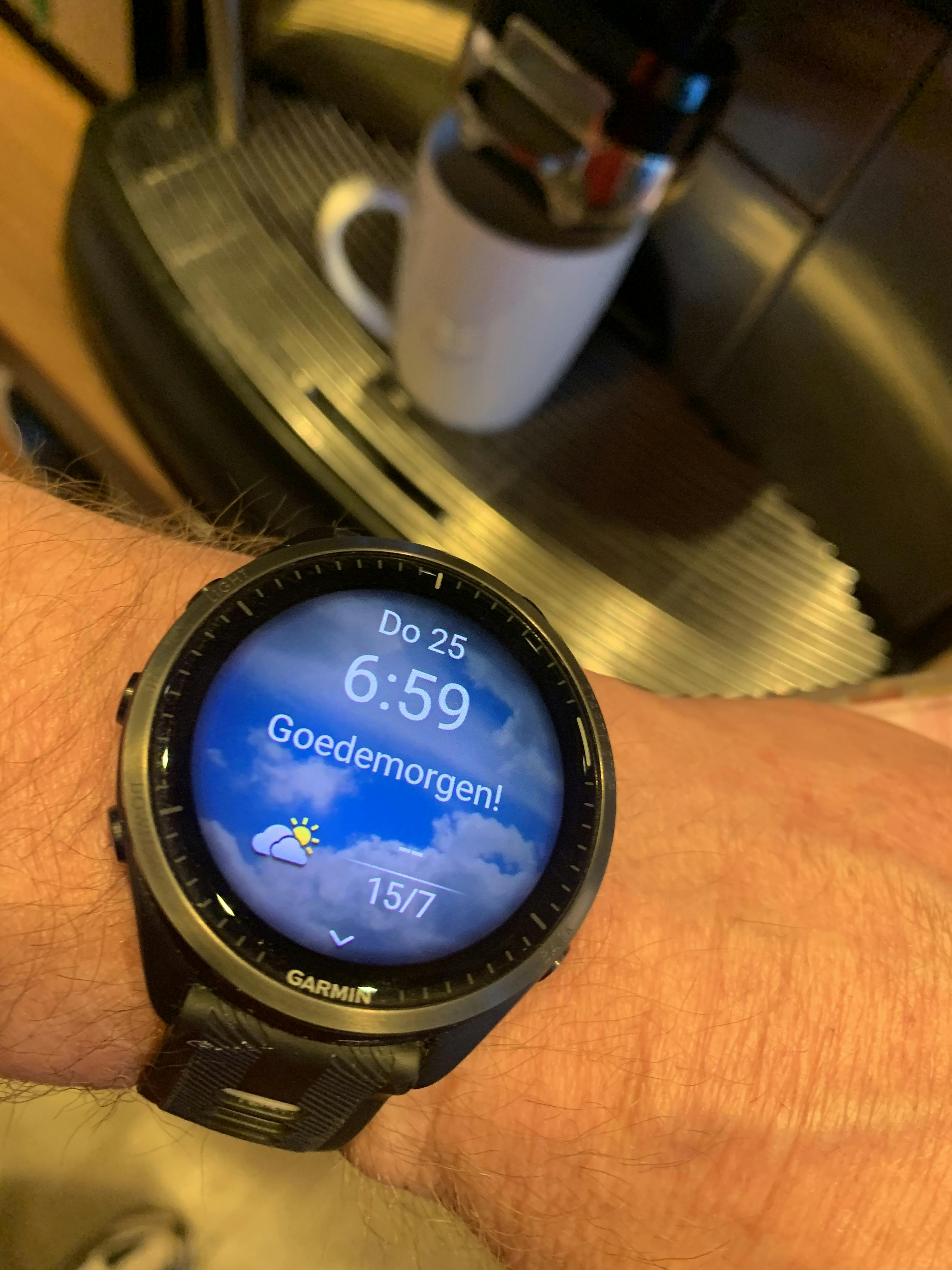 Omdat Garmin geen oplader meelevert maar alleen een oplaadkabel, is het volgende dat direct opvalt dat de oplaadkabel is vernieuwd. Helaas wel aan de verkeerde zijde. Om de kabel te gebruiken is er nu aan de kant van de oplader een usb-c aansluiting, prima en helemaal van deze tijd, maar aan de andere kant is het nog altijd de onhandige eigen Garmin-connector. Onderweg even opladen door een kabeltje te lenen is er nog altijd niet bij ook omdat draadloos opladen eveneens ontbreekt. Gelukkig zal het niet heel vaak nodig zijn, bij normaal gebruik van dagelijks twee uurtjes sporten en verder gewoon gebruik als smartwatch, gaat de accu tot zes dagen mee. Wel schakelt de Forerunner 965 wanneer de accu onder de 16 procent komt, terug naar de energiebesparingsmodus waarin het scherm uitschakelt net als de verbinding met de smartphone. Er komen dan dus geen berichten meer binnen op de Forerunner, sporten en registreren gaat nog wel en dit gaat ook echt door tot de accu helemaal leeg is.