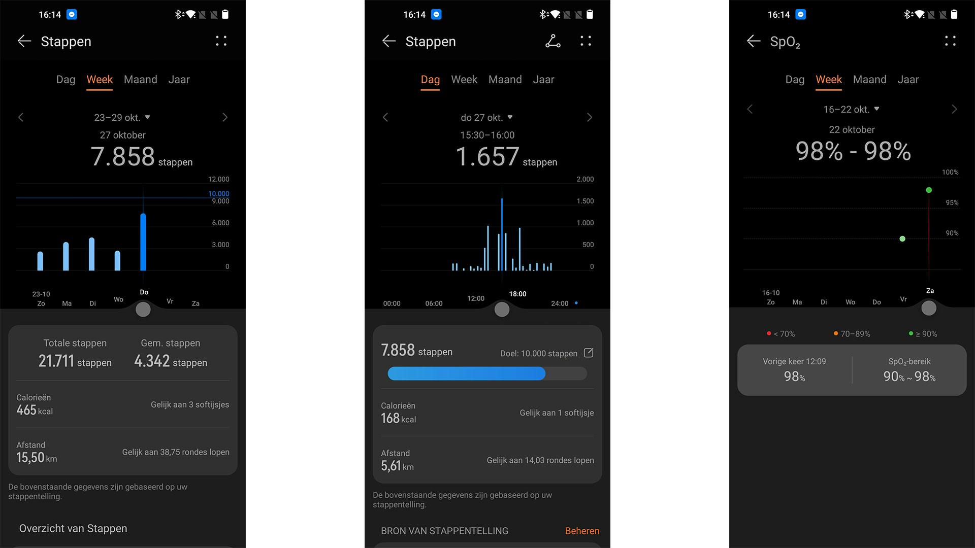 Over het algemeen lijkt de Huawei Band 7 ook correcte metingen uit te voeren. Soms komen de metingen niet helemaal overeen met metingen van professionele fitnessapparatuur dat je in de sportschool aantreft, maar heel ver zitten de Band 7-metingen er niet vandaan. Je kunt hier prima op varen, zonder het idee te hebben iets te missen of achtergesteld te worden in de informatievoorziening. Je bent wel aangewezen op de app en opties die Huawei zelf aanbiedt; helaas biedt de Huawei Band 7 namelijk geen ondersteuning aan voor third-party applicaties.