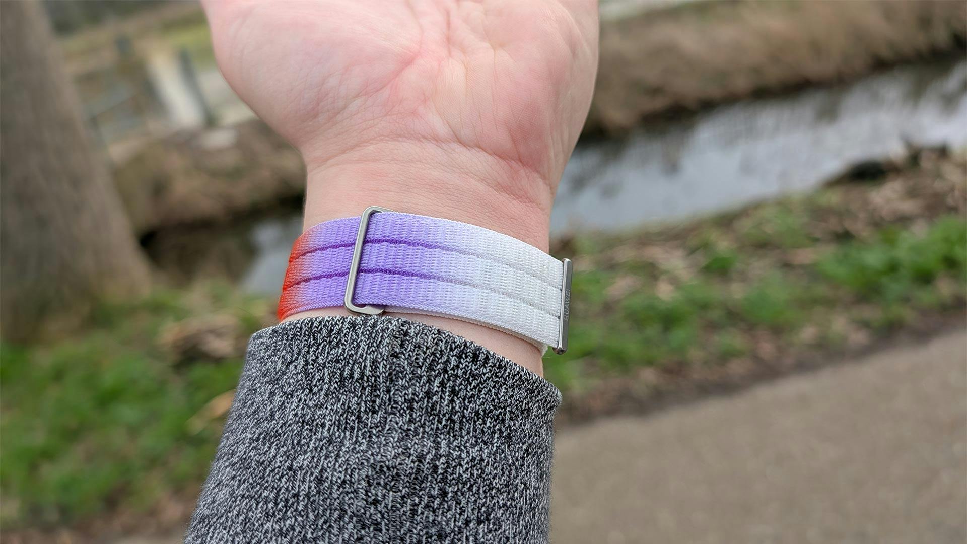 Je hebt de keuze uit verschillende bandjes, waaronder een geweven AirDry-variant die sneller droogt en beter ademt dan standaard rubber. Aanvankelijk dachten we dat het bandje zou schuren, maar dat blijkt tijdens onze hardloopsessies niet het geval.
