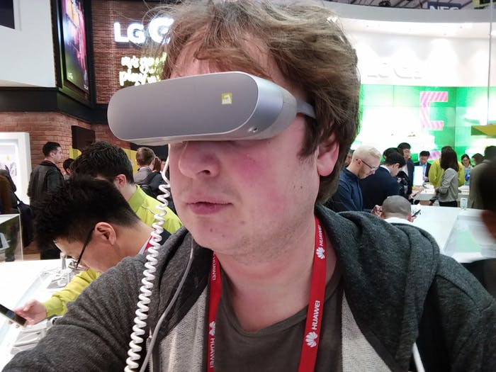 Dat klinkt alsof de 360 VR potentie heeft, al waren we nog niet erg onder de indruk van het apparaat zelf. Dat voelt namelijk nogal goedkoop aan, met twee slappe pootjes die bewust niet erg stevig zijn omdat je ze dicht kunt klappen als een echte bril. Op die manier maakt LG het apparaat in ieder geval een stuk mobieler dan concurrerende brillen.