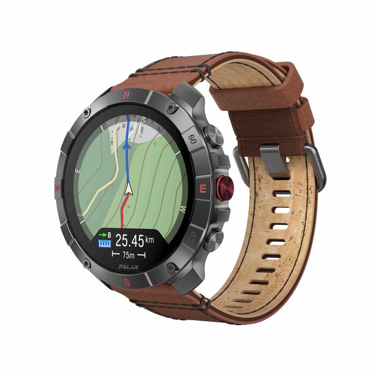 Je hoeft geen topsporter te zijn om een sportwatch te dragen, zoals je ook geen avontuurlijk leven hoeft te leven om het stoere uiterlijk van de Polar Grit X2 Pro-serie te waarderen. In stijlvol donkergrijs of zwart en voorzien van een bezel met gradenboog en stoere torx-schroefjes, is het een sieraad zeker aan de iets forsere mannenpols. Met 48,7mm doorsnee en 13,4 mm hoogte is de behuizing namelijk zeker niet klein. Het gewicht van 79 gram inclusief de siliconen armband maakt het echter prima draagbaar. Speelt geld geen rol, dan is er bovendien ook een titaniumversie die behalve 15 gram lichter ook een werkelijk prachtige extra set leren armbandjes heeft.