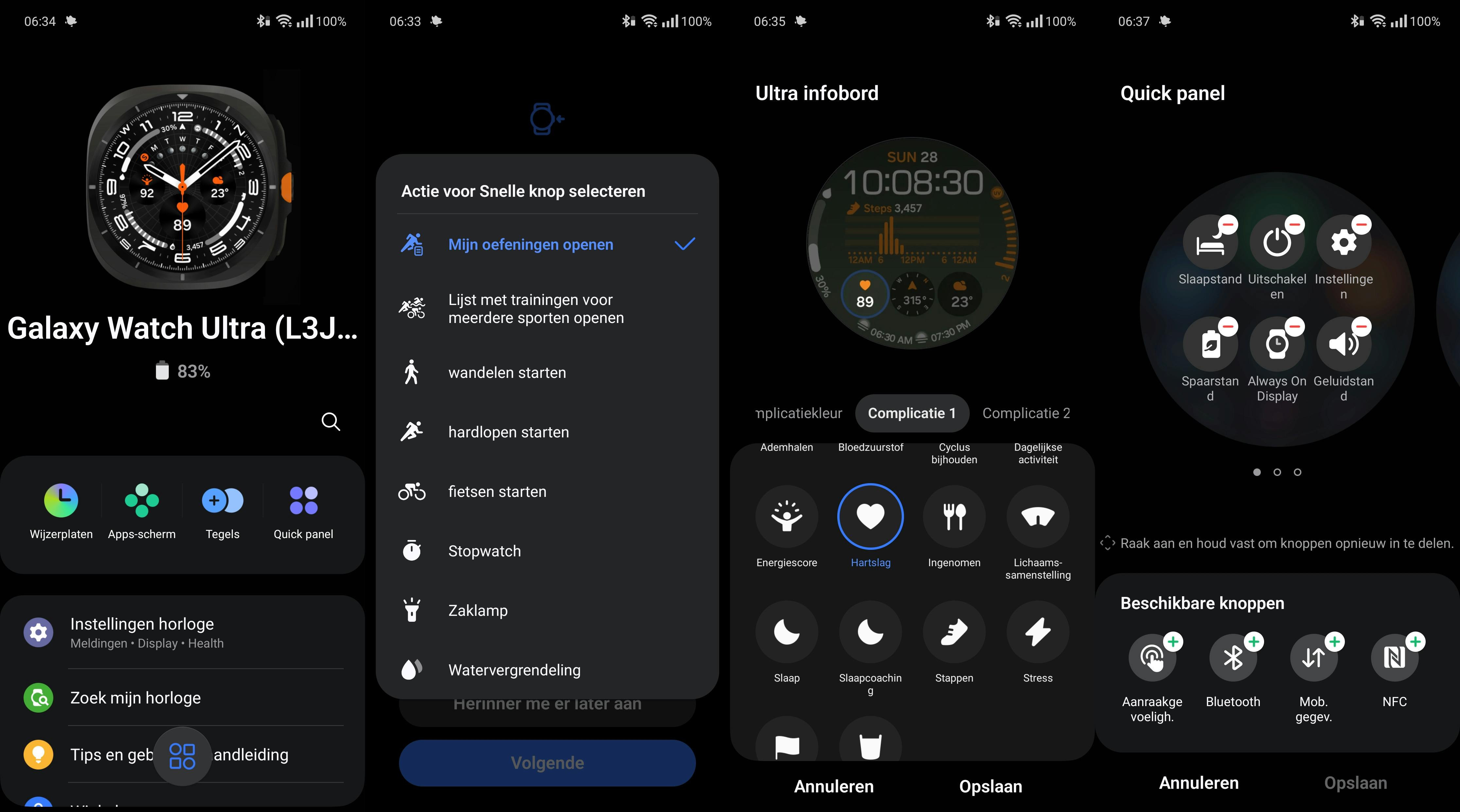 "Hé, heb jij nu ook een Apple Watch Ultra?" is een vraag die we in de afgelopen week meermaals gesteld kregen. Op de uitleg dat dit een Samsung-horloge is, volgde steevast het antwoord dat hij dan wel héél erg lijkt op die van Apple. Dat kunnen we niet ontkennen. Wat niet wegneemt dat de smartwatch goed in elkaar zit. De behuizing is stevig en het meegeleverde bandje draagt erg prettig. Het oledscherm oogt kleurrijk en kan erg helder, wat handig is in de buitenlucht. We moesten wel wennen aan een rond scherm in een vierkante behuizing. Aan de rechterkant zitten drie fysieke knoppen om snelle acties te starten.