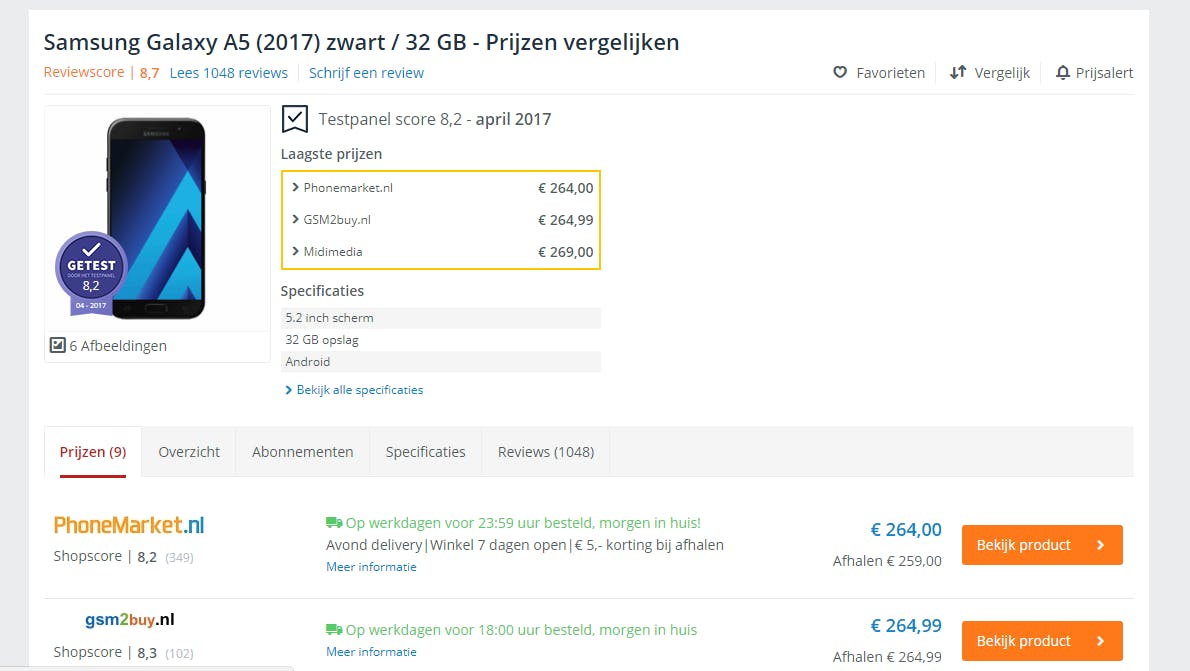 Een andere prima methode om te zoeken naar de beste prijs en daarbij het risico op oplichting te minimaliseren, is het gebruik van vergelijkingssites. Google heeft een ingebouwde vergelijkingsfunctie die je activeert door te klikken op Shopping wanneer je zoekt op een bepaald product. Het aantal sites dat is opgenomen in deze lijst is echter beperkt. Een andere optie is een site als www.kieskeurig.nl. Niet alleen vind je via deze site een overzicht van winkels waar het product dat je zoekt het voordeligst geprijsd is, Kieskeurig heeft ook nog eens strenge voorwaarden. Zo moet een winkel minimaal een jaar ingeschreven staan bij de KvK, minimaal een half jaar actief zijn én voldoen aan de wet Verkopen op afstand. Daarnaast worden er door de site regelmatig testbestellingen uitgevoerd op basis van signalen dat er iets aan de hand is. Ook dit alles is natuurlijk geen garantie om blind op een aanbieding af te gaan (blijf tip 1 altijd in gedachten houden), maar een extra geruststelling is het wel.