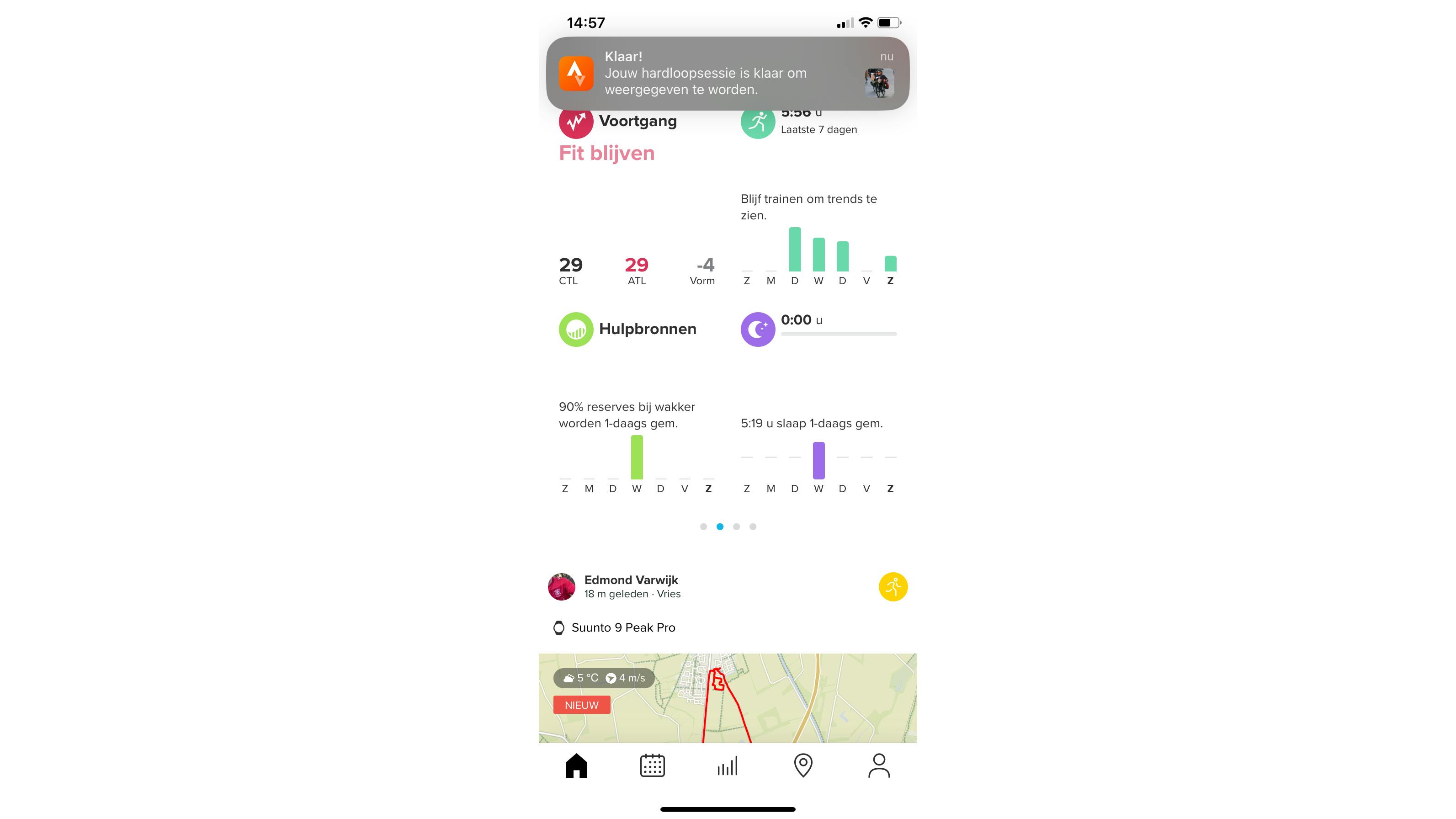 Suunto biedt de mogelijkheid met andere Suunto-gebruikers te verbinden en activiteiten en zelfs foto’s te delen, maar dit is duidelijk niet het sterkste punt van het platform. Met SuuntoPlus is het mogelijk tot vijftien extra diensten aan de Suunto-app en smartwatch te koppelen. Dit betreft zowel diensten van Suunto als van derden, zoals Strava en TrainingPeaks. Prettig is ook dat Suunto behalve trainingsresultaten uploaden ook het downloaden van nieuwe gestructureerde trainingen ondersteunt.