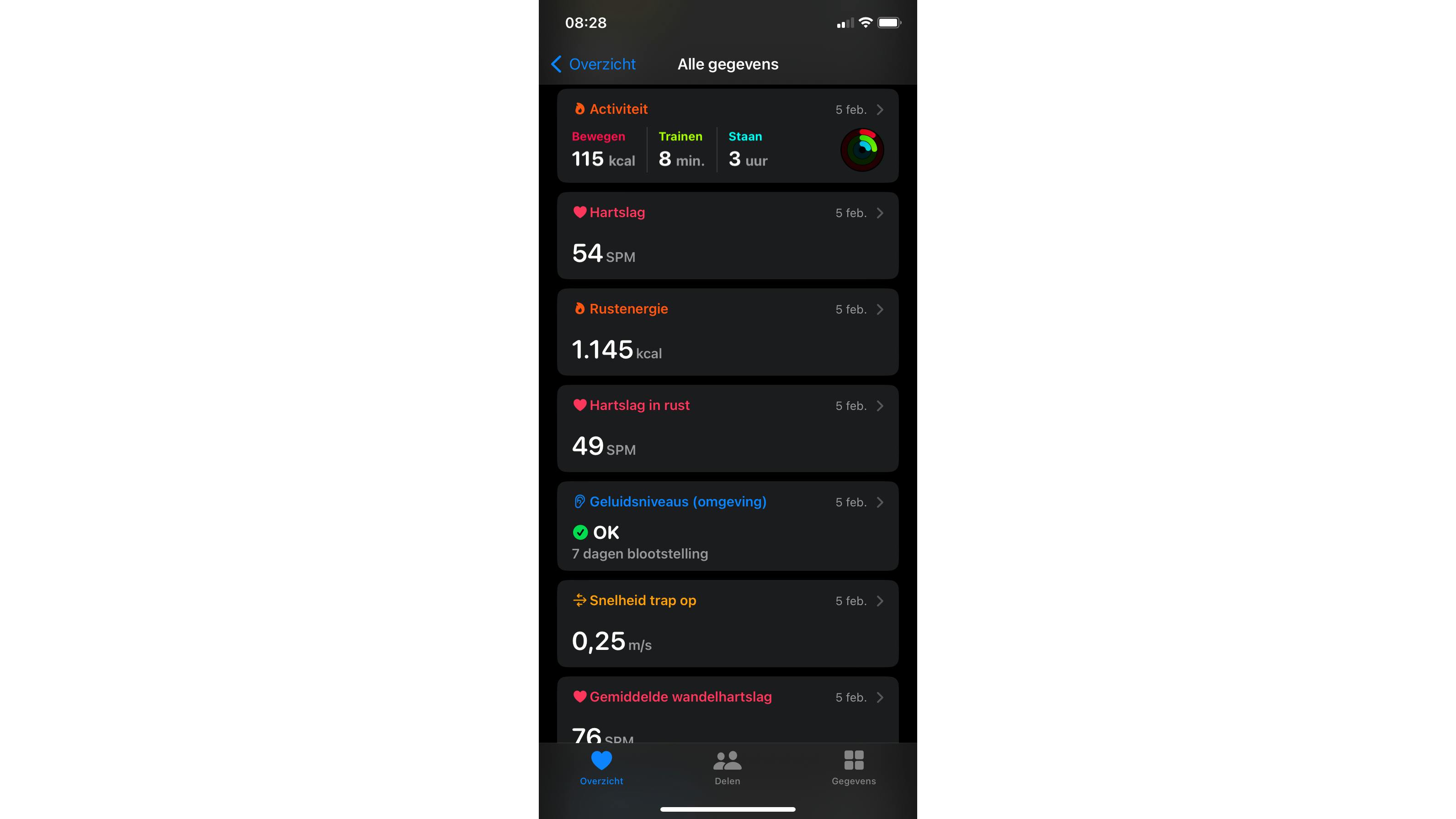 Alles draait bij Apple om twee apps: Gezondheid en Conditie. Gezondheid richt zich vooral op gegevens over slaap, medicijngebruik, de maandelijkse cyclus bij vrouwen en stress. Daarnaast analyseert Apple Gezondheid de gegevens over langere tijd, maar daarvoor heeft het eerst gegevens van meerdere maanden tot zelfs een half jaar nodig! Maak je met de Apple-watch een ecg (hartfilmpje) of meet je het zuurstofgehalte in het bloed, dan is de Gezondheids-app onmisbaar, op de watch zelf is er niets van te zien.