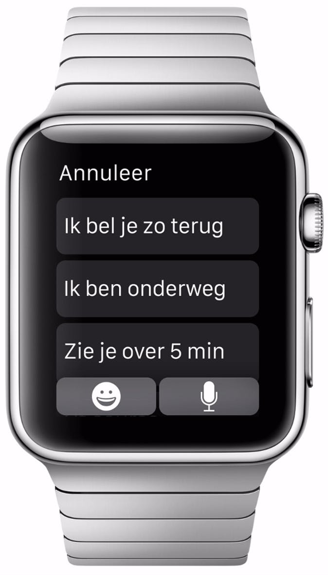 Je er via de digitale kroon ook voor kiezen om met een SMS te antwoorden als je bijvoorbeeld druk bezig bent. De standaard SMS antwoorden waaruit je in dit menu kunt kiezen kun je instellen door op je iPhone naar Instellingen > Telefoon > Reageer met tekstbericht te gaan.