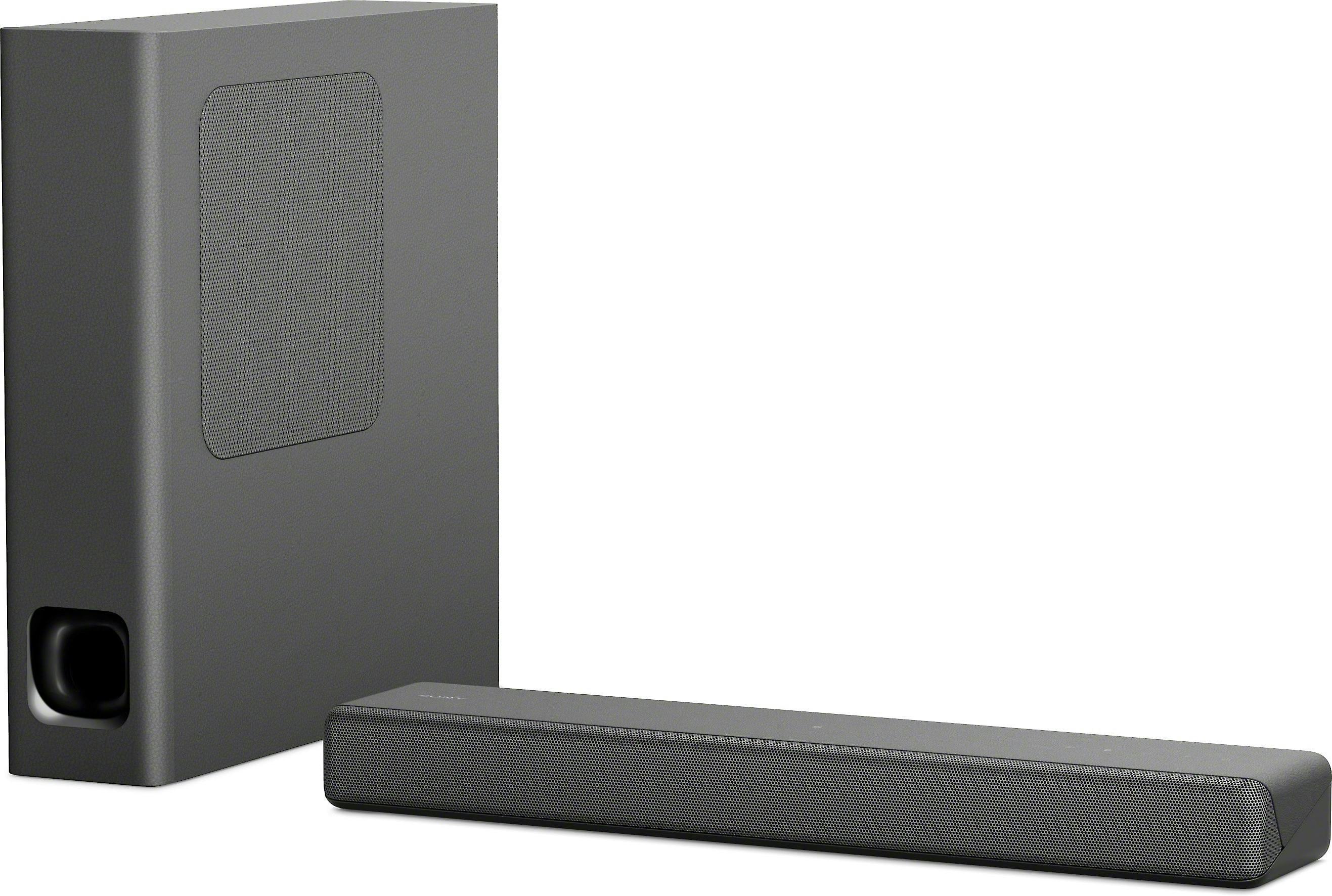 Als er een prijs was voor het kleinste toestel in dit dossier, dan zou Sony hem probleemloos binnenhalen. De HT-MT300 is bijzonder compact, waardoor het meer een bluetooth-speaker lijkt dan een soundbar. Ter compensatie wordt er een grote subwoofer meegeleverd die ontworpen is om onder de bank te schuiven. Kortom, dit is een product dat regelrecht mikt op lui met een kleine flat of studio. Heel veel franjes biedt de HT-MT300 niet. De verbinding met de tv verloopt via een optische kabel, het volume regel je dus via de remote. De HT-MT300 is knap afgewerkt, met een namaakledereffect aan de bovenkant.