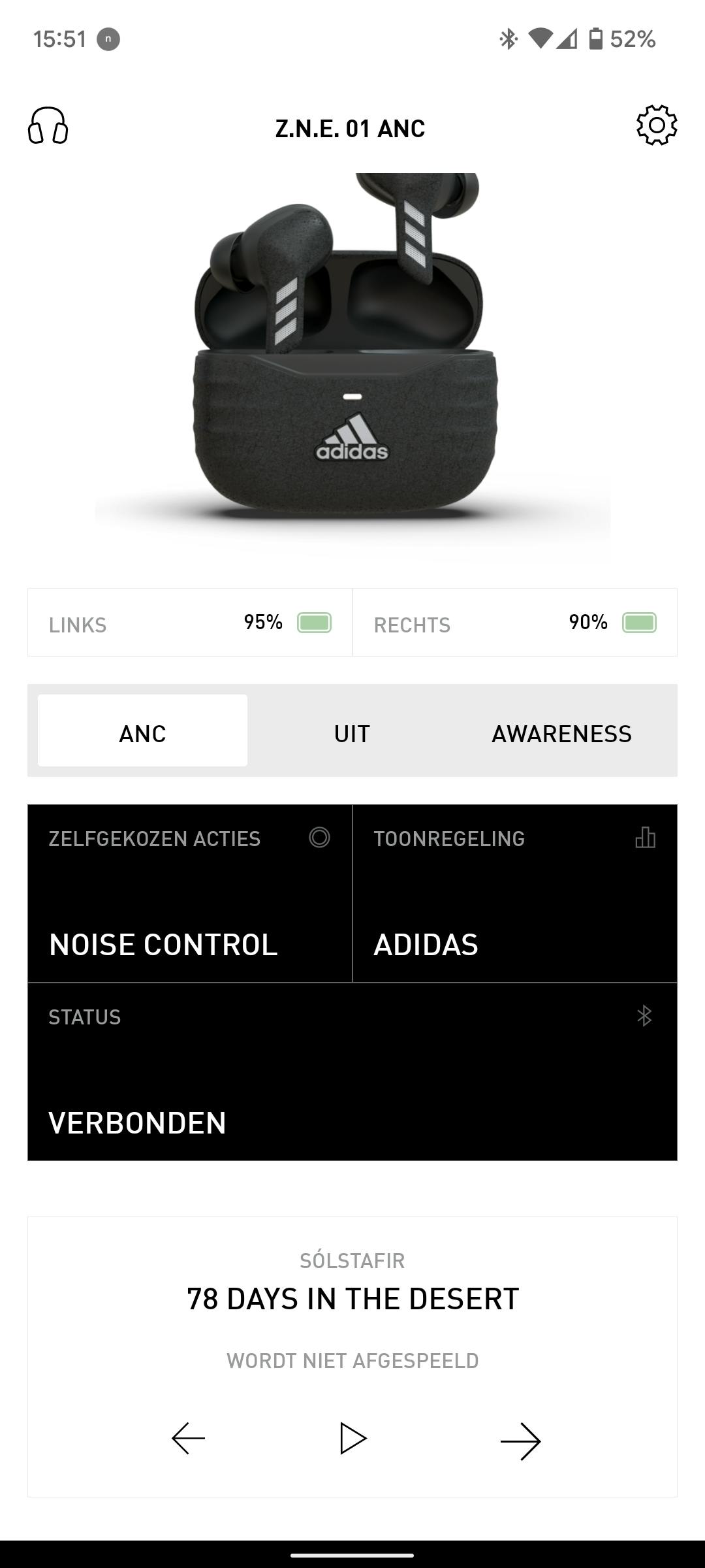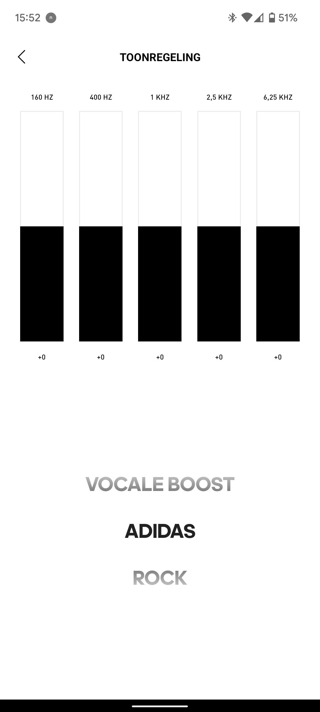 De app past helemaal in de Adidas-huisstijl en biedt bijna alle functionaliteit die je mag verwachten. Bijna. Een optie om meerdere apparaten te verbinden ontbreekt, maar dat is geen gemis te noemen bij oortjes die je voornamelijk gebruikt tijdens het sporten.
