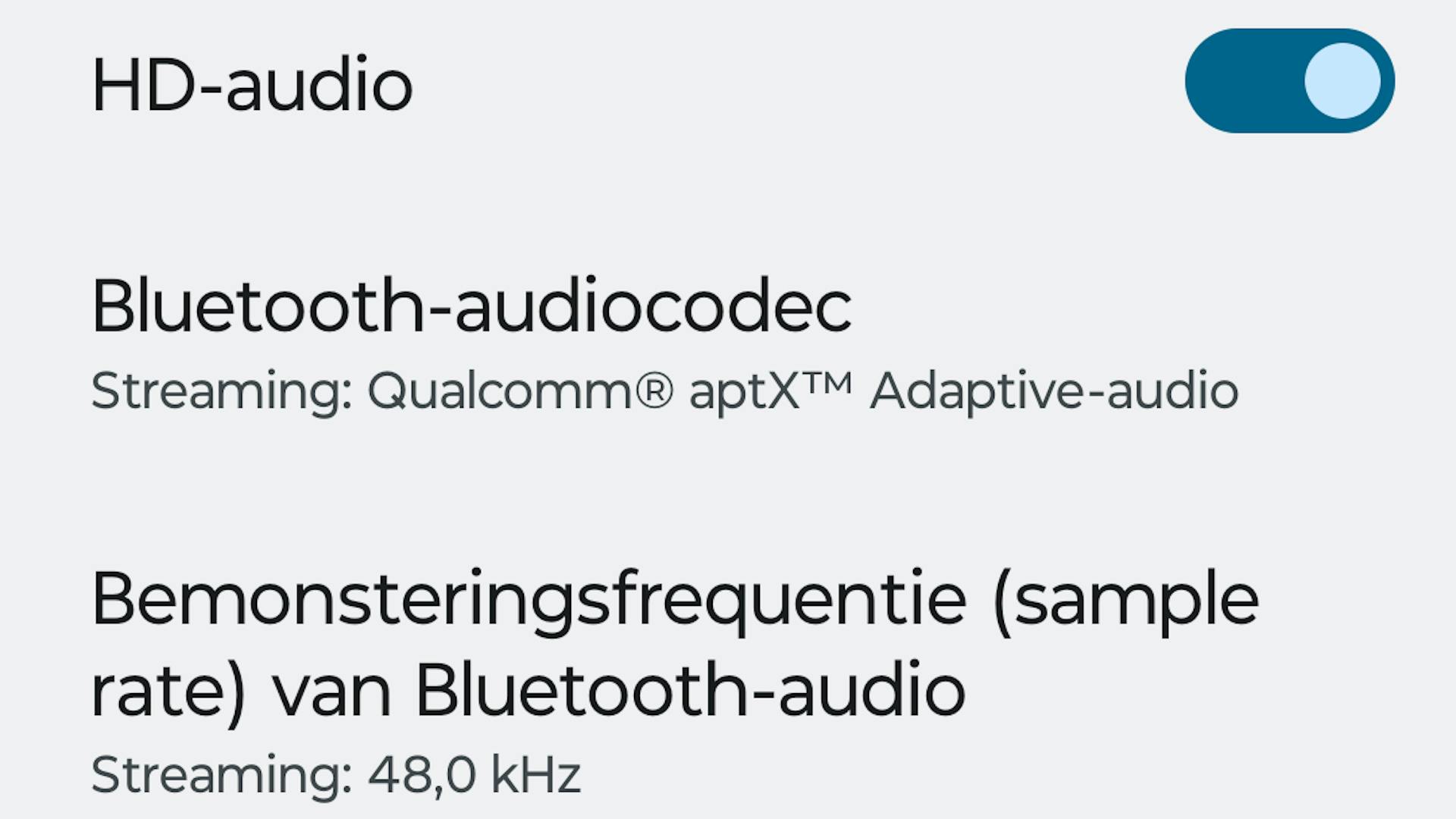 Het was nooit de bedoeling dat een gebruiker bezig zou zijn met bluetooth-codecs. De selectie van codec gebeurt achter de schermen. Tegenwoordig bieden sommige smartphonefabrikanten je wel de optie om een bluetooth-codec aan te passen. Bij Motorola bijvoorbeeld vind je bij de instellingen van een gekoppeld bluetooth-toestel (zoals een hoofdtelefoon) de optie ‘HD-audio’. Schakel die in en je gebruikt een betere codec. Zoals gezegd wordt deze mogelijkheid niet door ieder merk geboden. Bij bijvoorbeeld Samsung vind je deze optie weer niet.