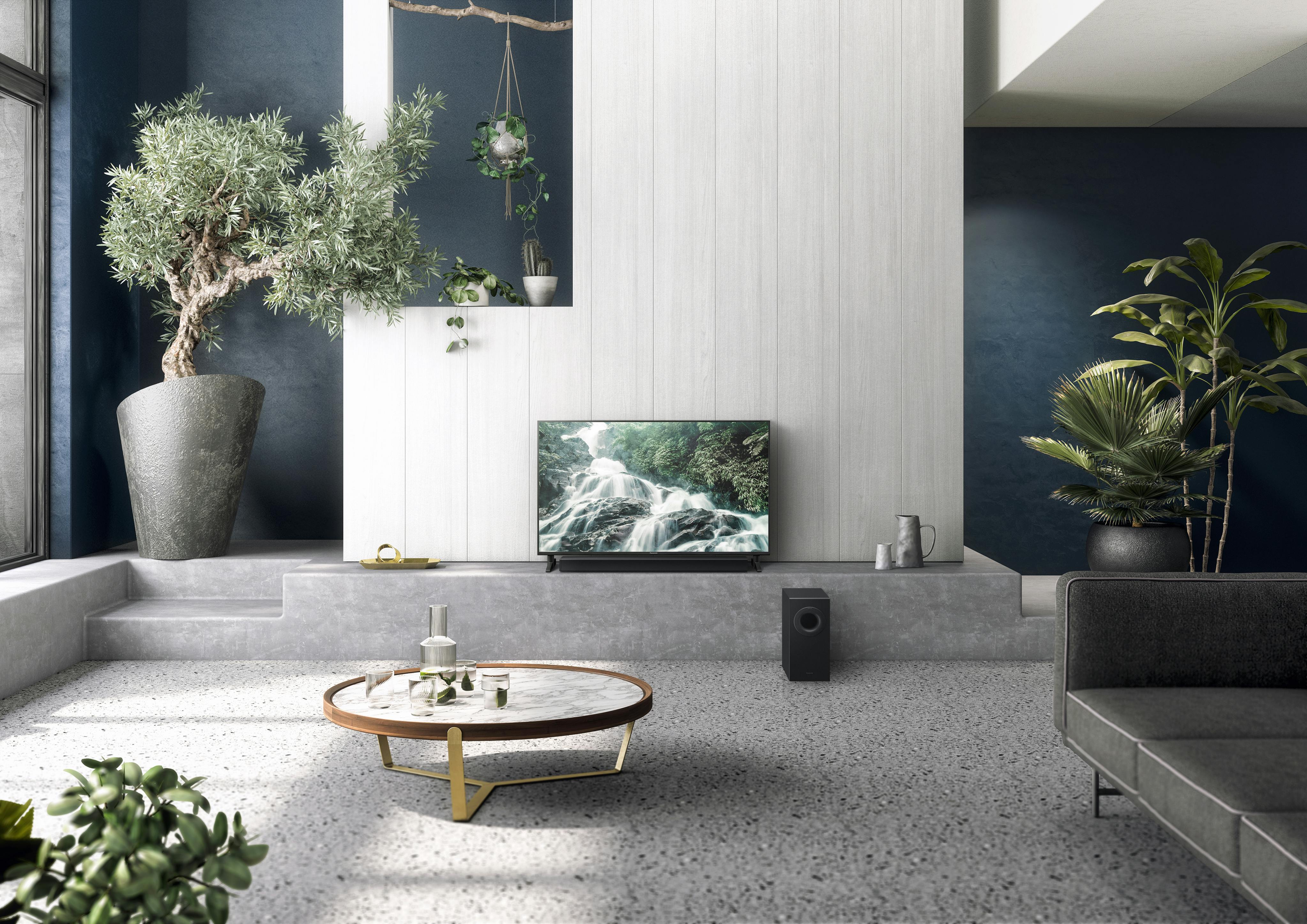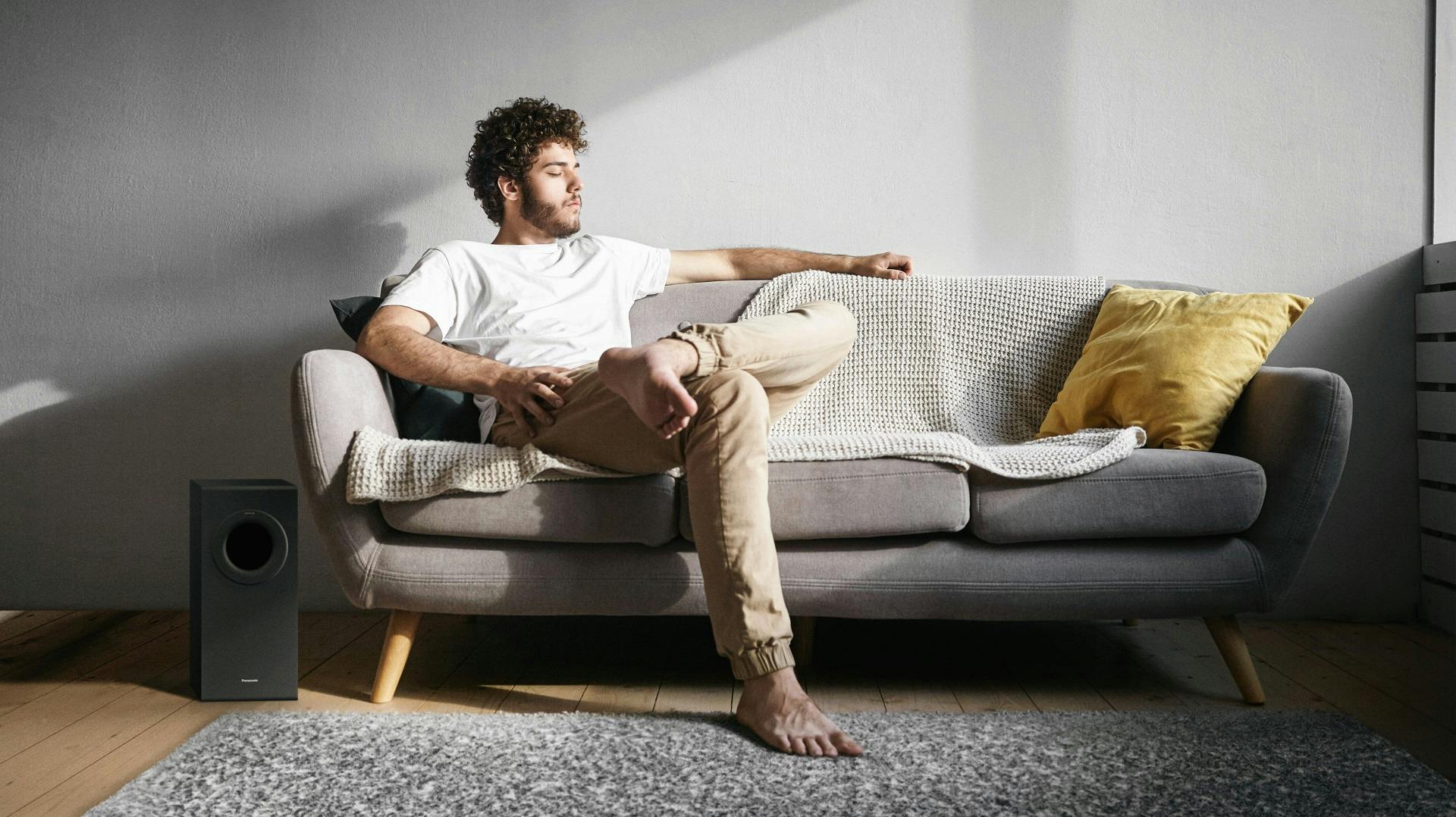 Om deze soundbar aan de praat te krijgen, heb je geen hogere wiskunde nodig; de installatie spreekt voor zich en de beschrijving kan in de doos blijven. Er komen geen kluwen kabels aan te pas, want de meegeleverde subwoofer is draadloos en heeft alleen stroom nodig; een fysieke verbinding tussen de soundbar en de subwoofer is dus niet nodig. De soundbar kan worden bediend met een afstandsbediening, maar er zijn ook knoppen aan de bovenkant aanwezig. Handig is ook dat je er een externe harde schijf op kunt aansluiten, zodat je je muziek daar vanaf kunt spelen.