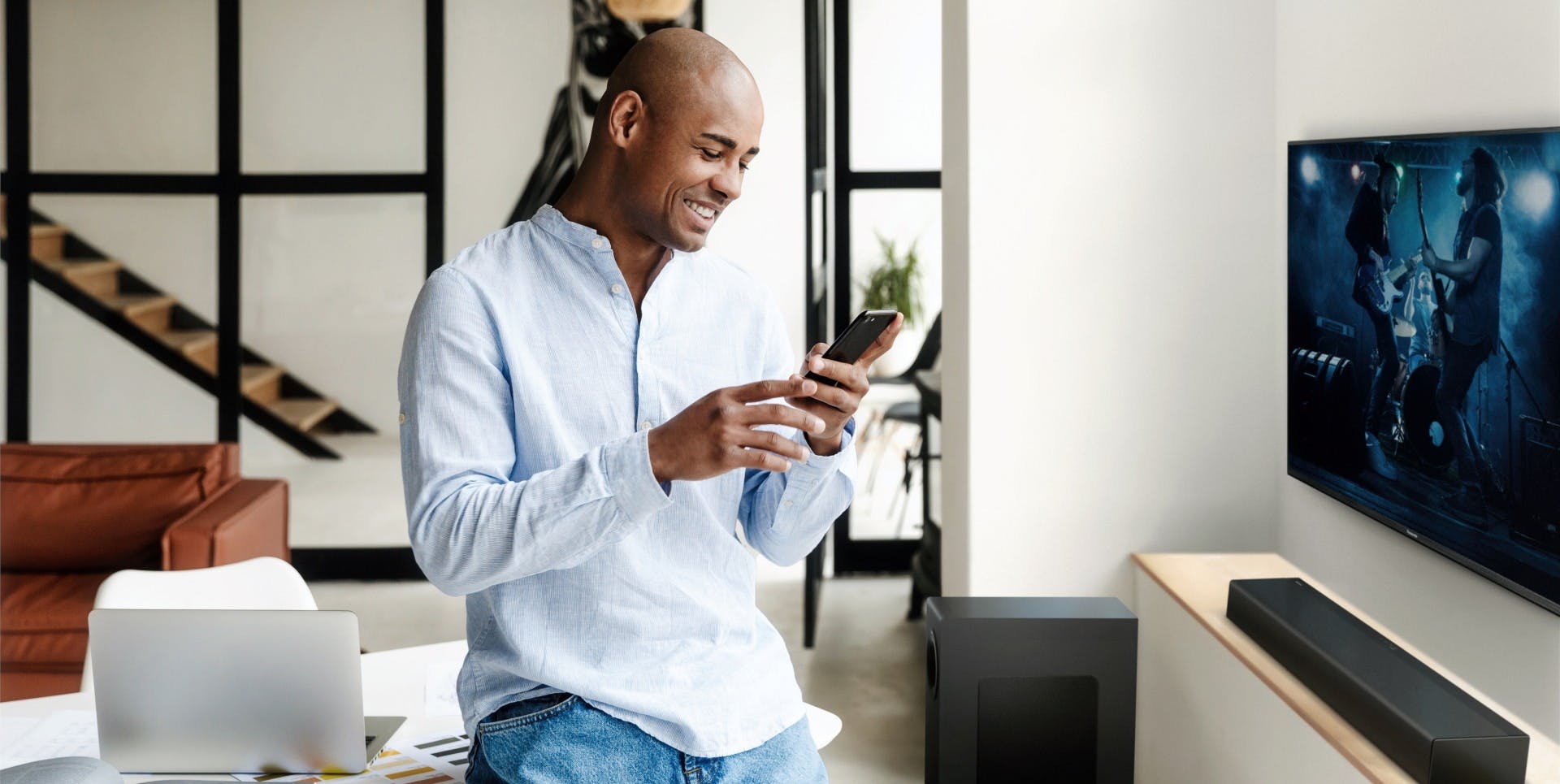 De soundbar heeft drie aansluitingen: hdmi met ARC, een optische aansluiting en een usb-aansluiting. Het valt tester Gert-Jan op dat de Panasonic-soundbar Dolby DTS ondersteunt, maar wel andere zaken mist: “Hij heeft geen automatische geluidskalibratie. Ook zit er geen equalizer op de soundbar of de afstandsbediening.” Wel kun je de soundbar met een Panasonic-app bedienen, vertelt Jurriena: “In die app kun je de geluidskwaliteit altijd naar wens aanpassen.” Kim vond de afstandsbediening wat aan de kleine kant: “Wat ik wel een beetje apart vind, is de mini-afstandsbediening die je vrij snel kunt kwijtraken.”