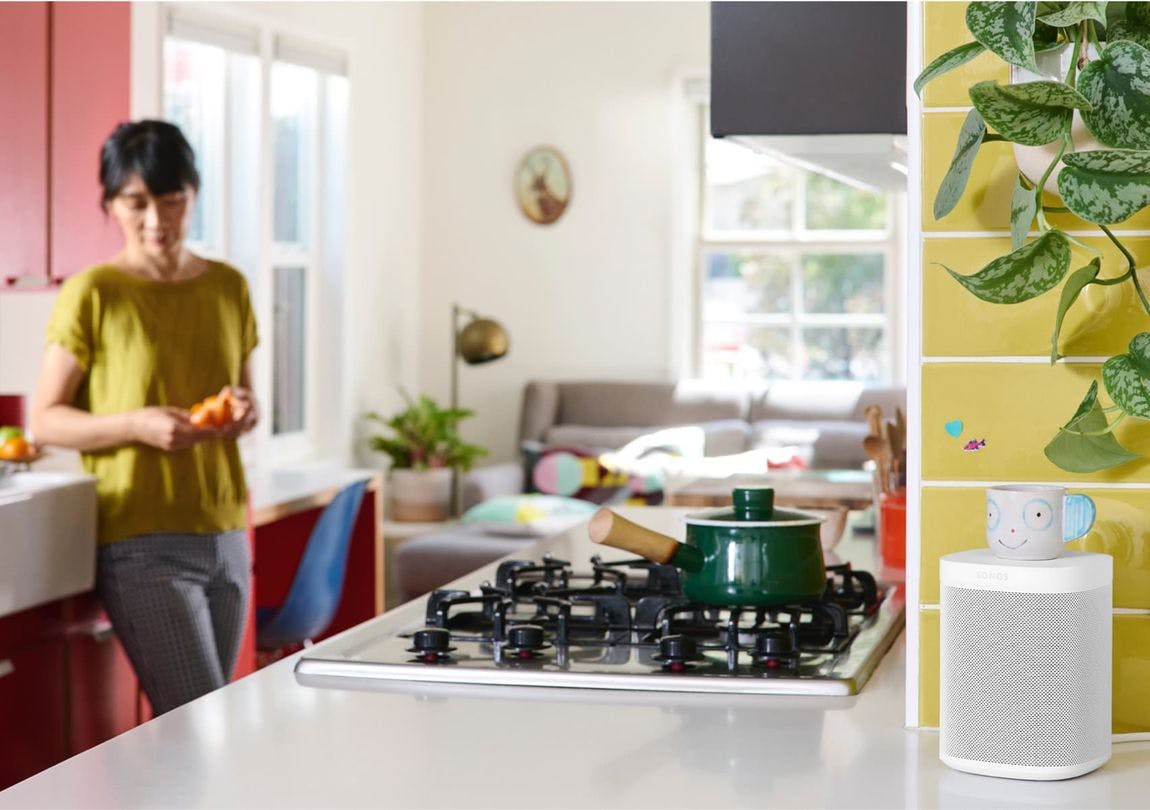 Dankzij de gebruiksvriendelijke Sonos-app fungeert jouw smartphone als afstandsbediening. Wijzig onder meer het volume en kies in welke kamers je muziek wilt horen. Laatstgenoemde optie is alleen van toepassing wanneer je in huis meerdere Sonos-apparaten beheert. Heb je even geen smartphone op zak? Geen probleem, want de behuizing bevat aan de bovenzijde een aanraakpaneel om de muziek te bedienen. Pauzeer of skip daarmee een liedje.