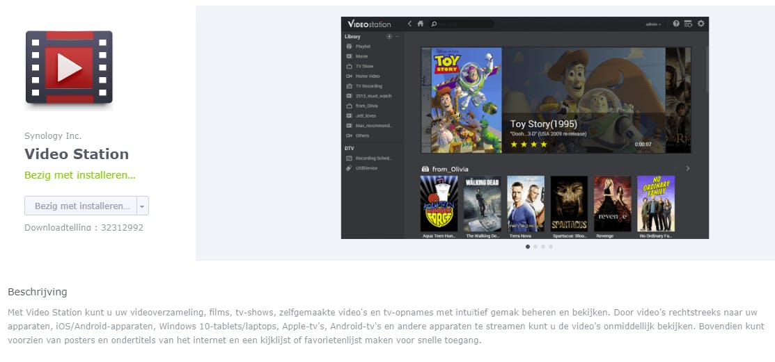 In deze workshop gebruiken we zoveel mogelijk standaard functionaliteit en software van de verschillende nas-fabrikanten. Bij Synology gaan we hiervoor naar Package Center en kiezen Alle pakketten / Multimedia. Hier vind je de Media Server, Audio Station en Video Station. De eerste is voldoende om mediacontent van de nas naar een UPnP/DLNA-apparaat zoals veel televisies en stereosystemen te streamen. Het is wel een hele kale ervaring. Daarom gaan we aan de slag met Video Station.