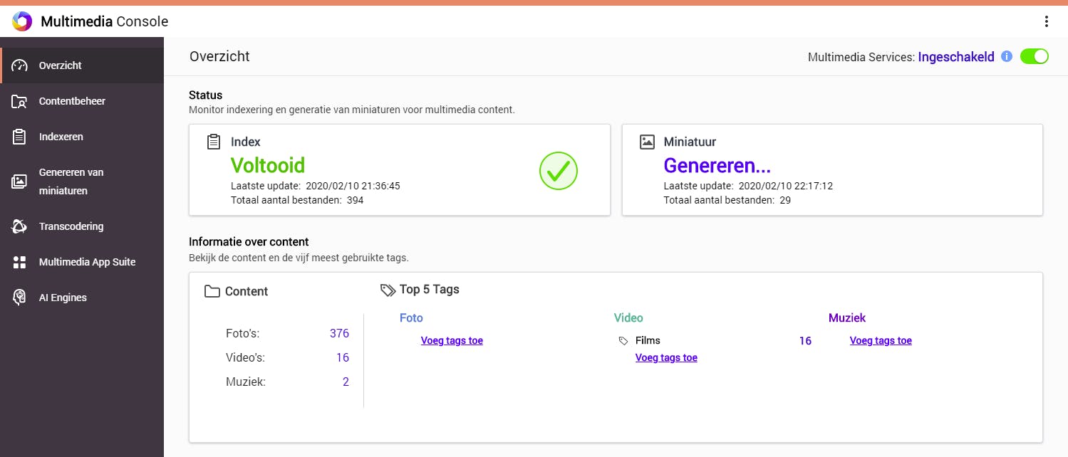 Is de Multimedia Console nog niet geïnstalleerd, installeer die dan uit App Center en schakel de service in. Voeg daarna de mediaservices toe via het tabblad Multimedia App Suite. Vergeet ook de CodexPack niet voor verbeterde transcodering.