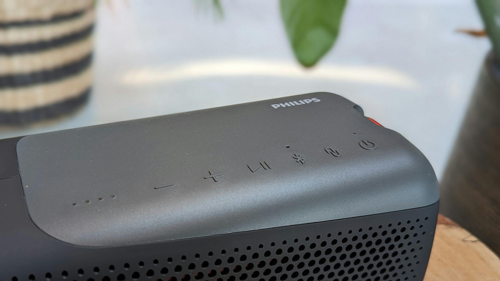 De Philips-speaker zit behoorlijk volgepakt, want de speaker is compact genoeg voor een tas (10 bij 28 bij 10 centimeter), maar weegt redelijk zwaar: bijna twee kilo. De 5.000 mAh-accu kan voor 24 uur luisterplezier zorgen tot hij weer opgeladen moet worden. Ook is de speaker voorzien van een IP67-waterdichtheidsrating.