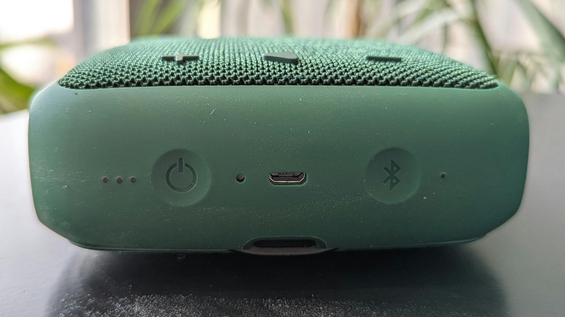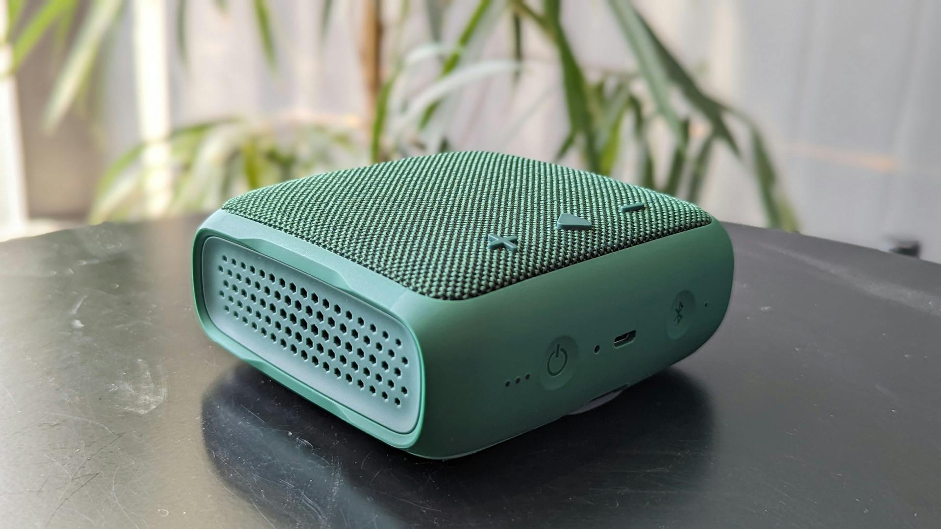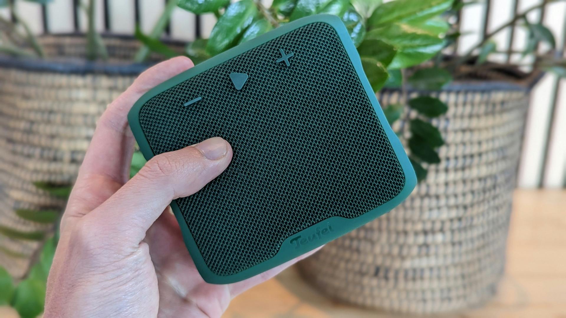 De Teufel Boomster Go is de kleinste speaker uit de test: 11 bij 5 bij 10 centimeter, met een gewicht van 350 gram. Dat is zo klein en licht zelfs dat ‘ie met een touwtje komt om de speaker vast te houden of op te hangen. Je kunt bij het Duitse audiomerk ook terecht voor een stereo-setje van twee van deze bluetooth-speakers. De speaker heeft een IPX 7-bestendigheid tegen water en stof. De accu van de speaker kan zo’n tien uur door voordat deze opgeladen dient te worden. Dat opladen is wel een dingetje: daar wordt de micro-usb-stekker voor gebruikt. Een oplader die zo ouderwets is dat ‘ie binnenkort niet meer op nieuwe elektronica mag van de EU.