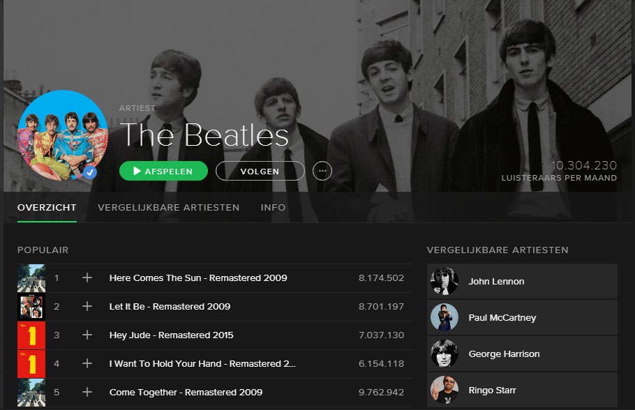 Daar zijn de dan eindelijk: The Beatles maken sinds eind 2015 ook hun opwachting.