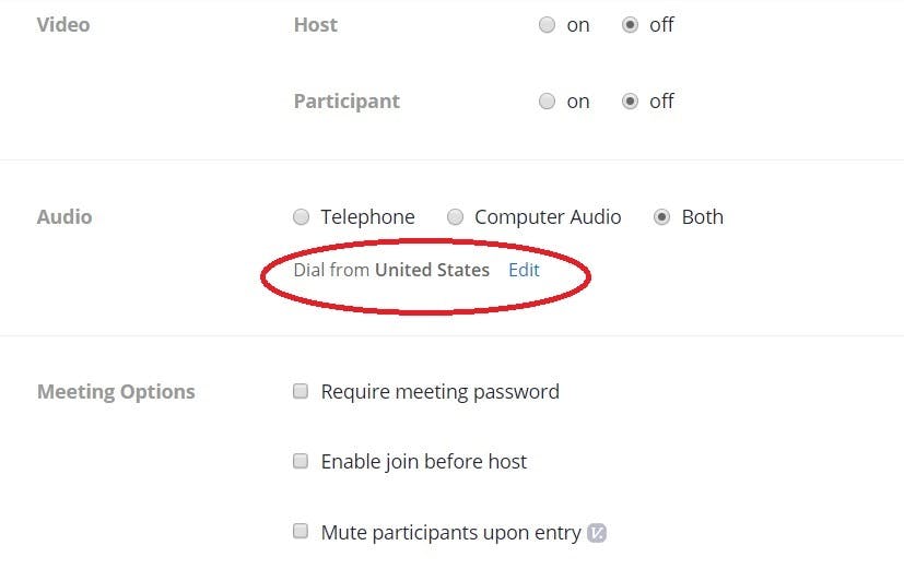 Als je alleen met elkaar wil praten zonder beeld, kun je ook met je telefoon inbellen. Let er hierbij op dat je het juiste land selecteert. Op deze manier krijg je in de uitnodiging die je verstuurt automatisch het juiste telefoonnummer waarmee iedereen kan inbellen.