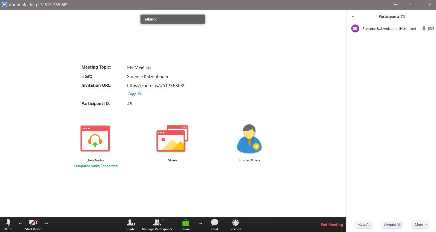 In je browser opent dan automatisch een nieuw scherm. Het kan zijn dat jij en/of je deelnemers een klein softwareprogramma dienen te installeren voordat het gesprek kan beginnen. Zoom Meetings is een app die het gesprek ondersteunt. Zodra iedereen voldoet aan de eisen, komen jullie automatisch in dezelfde conferencecall terecht.