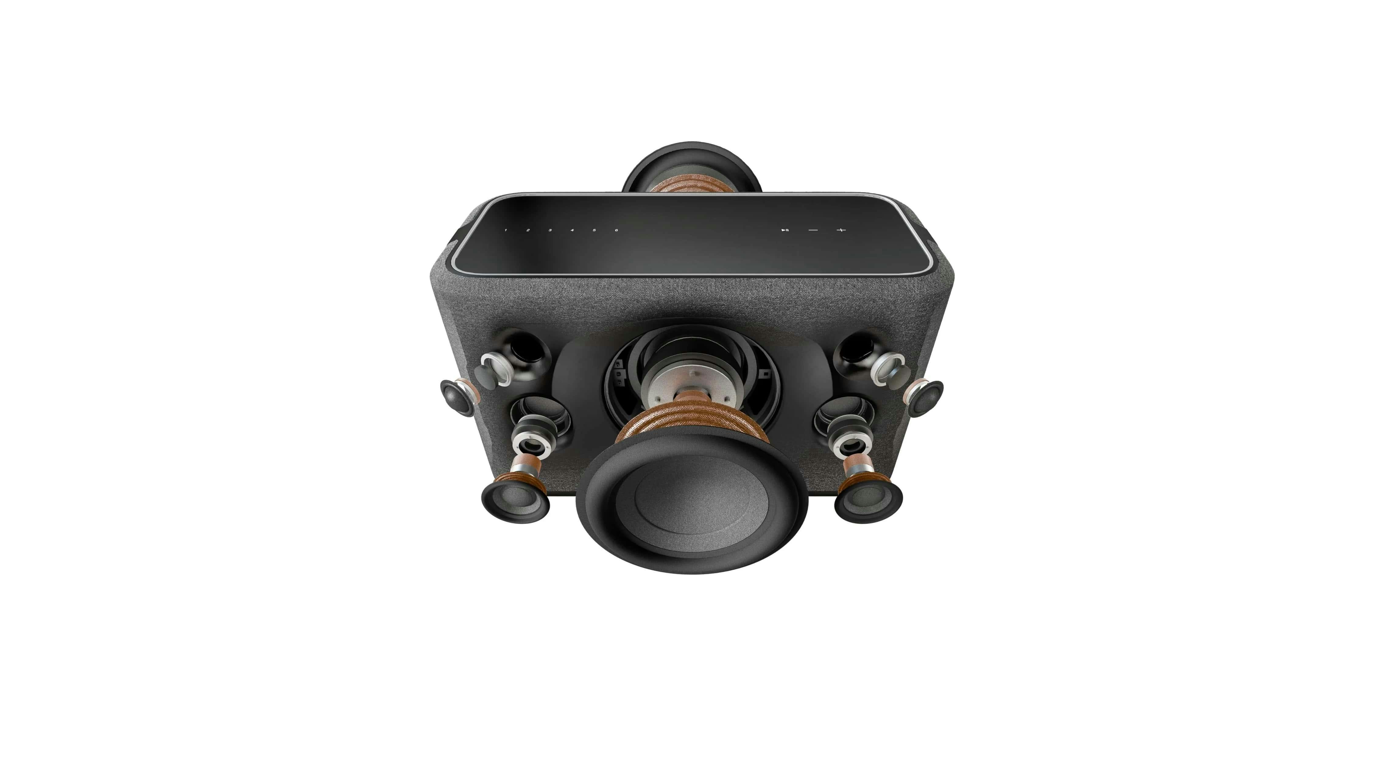 Zoek je een wifi-speaker met een vol geluid? De recent verschenen JBL Authentics 500 bevat drie tweeters en evenzoveel woofers. Voor een flinke portie bas is er bovendien een neerwaartse subwoofer ingebouwd. Het totale uitgangsvermogen bedraagt 270 watt. Je past via de draaiknoppen aan de bovenzijde het hoog (treble) en laag aan. Anders dan het authentieke retrodesign doet vermoeden, ondersteunt dit audioproduct diverse moderne snufjes. Zo kun je verbinden via wifi of de ethernetpoort aan de achterzijde om deze slimme speaker aan het thuisnetwerk te koppelen. Je start vervolgens via AirPlay, Chromecast of Spotify Connect een muziekstream. Tot slot ondersteunt de Authentics 500 Google Assistent.