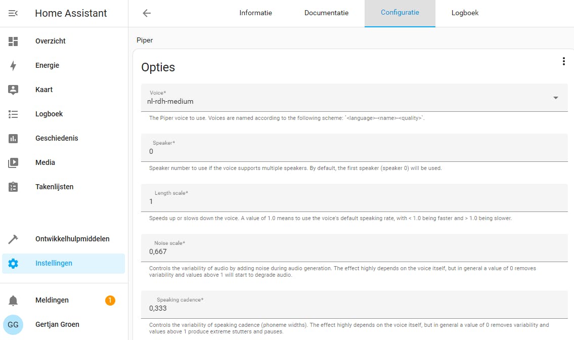 - Add-on Piper installeren voor omzetting tekst naar spraak
