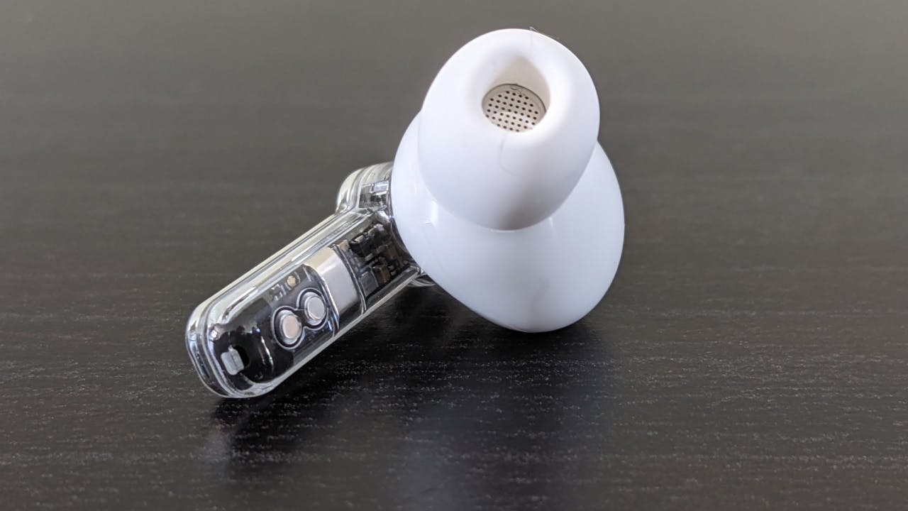 De oortjes beschikken, net als de AirPods Pro over rubber tipjes, die verwisselbaar zijn om ze goed op maat van jouw oor af te stemmen. Bovendien zijn de oortjes erg licht, waardoor ze een optimaal draagcomfort hebben, stevig blijven zitten en prima het gehoor afsluiten om het geluid en functies als ruisonderdrukking optimaal te laten werken. Want inderdaad, de Nothing Ear(1) beschikt over ruisonderdrukking en een ambient modus, die omgevingsgeluid juist doorlaat. Wat handig is als je bijvoorbeeld je oortjes gebruikt in het verkeer.