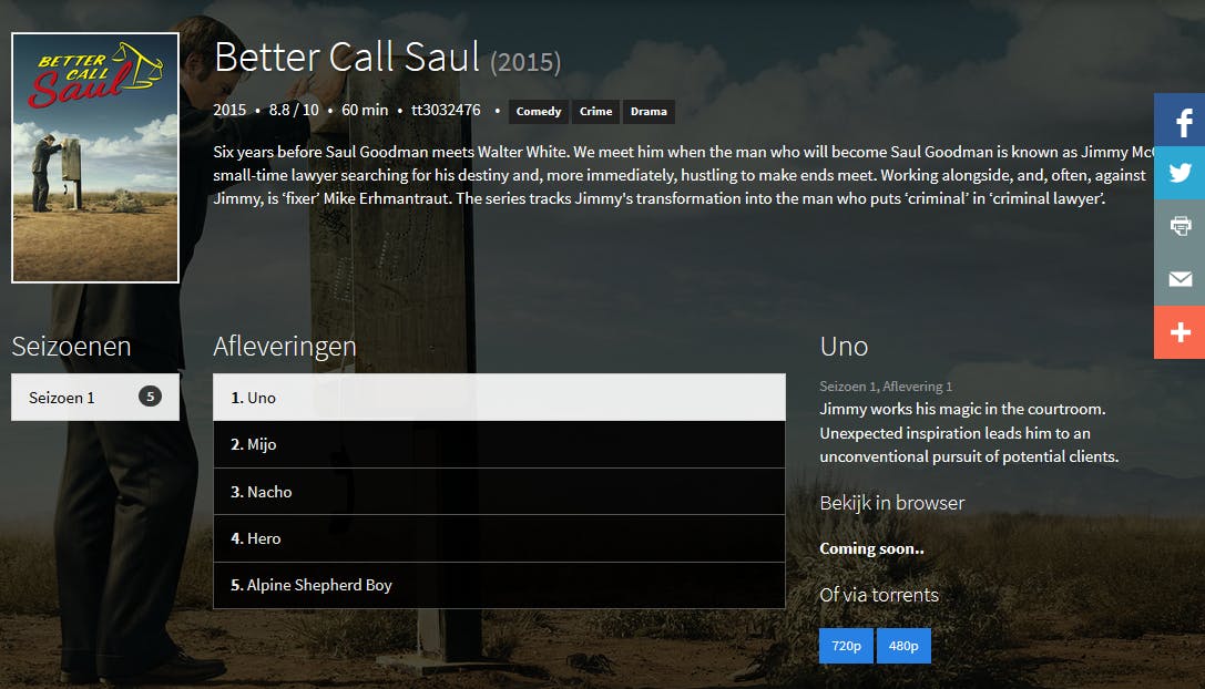 Voor Nacho Time is dus geen aparte software nodig, films en series worden rechtstreeks in je browser gestreamd. Hierdoor werkt het systeem dus op alle systemen die zijn voorzien van een browser met HTML5-ondersteuning. Niet alle films en series kun je rechtstreeks in de browser bekijken, in dat geval wordt er een link geplaatst naar de torrent, waarna je de film of serie kunt downloaden met torrent-software.