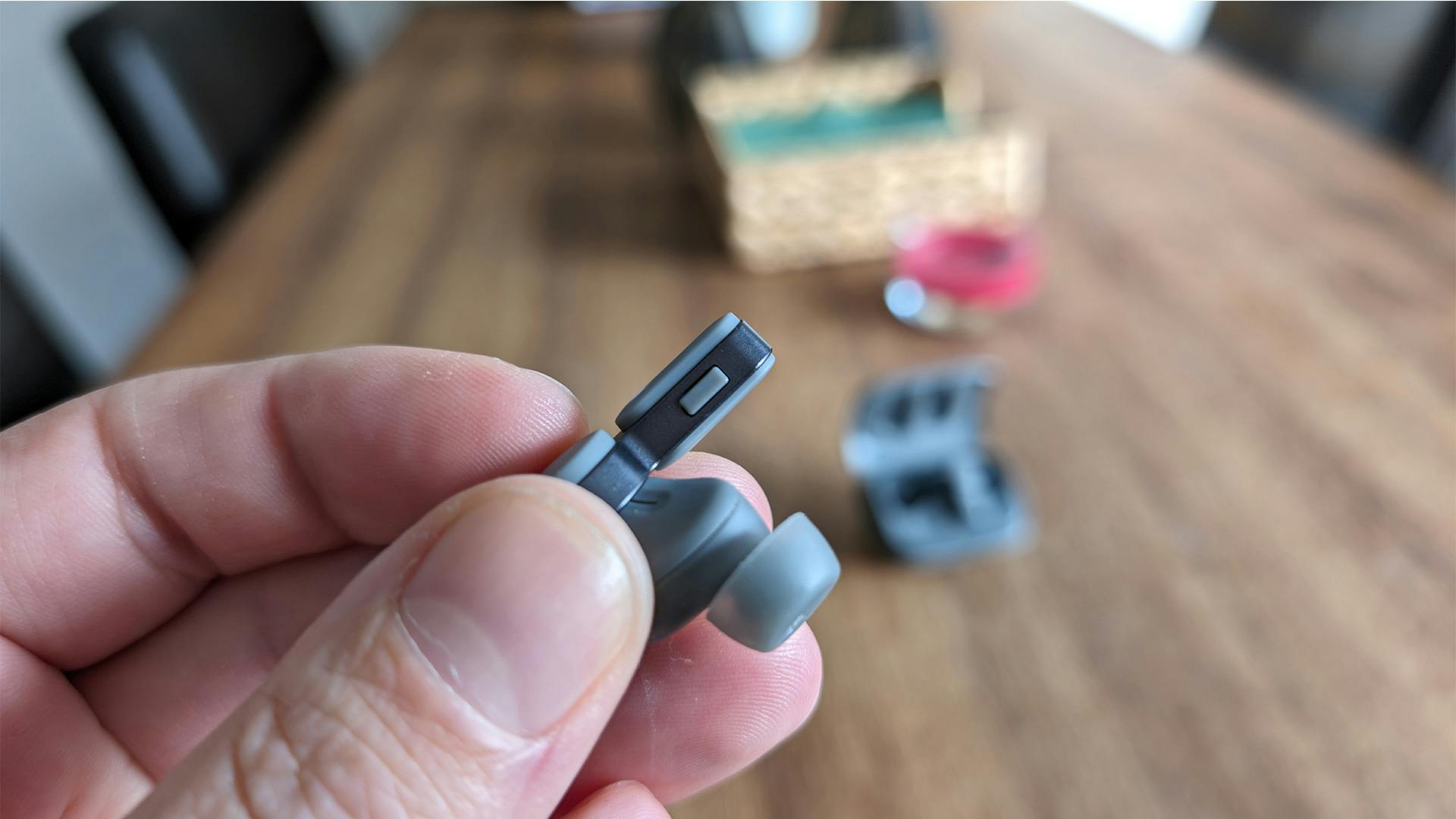 Helemaal omdat die touchinterfaces vaak niet goed genoeg werken. Bij de Dyson Zone (weliswaar een koptelefoon, maar toch) heeft het echt heel lang geduurd voordat we het tikken onder de knie kregen. Daar zit vaak een specifiek ritme in, dat niet meteen duidelijk is. Daar heeft de Audio-Technica ATH-TWX7 geen last van. Mocht-ie daar wel last van hebben, dan schakel je de touchknoppen gewoon uit en hoef je daar niet over na te denken. Helaas is het zo dat de oordoppen geen draagsensor hebben. Dus als je ze uit doet, pauzeert de muziek niet. Dat gebeurt ook niet wanneer iemand tegen je praat.