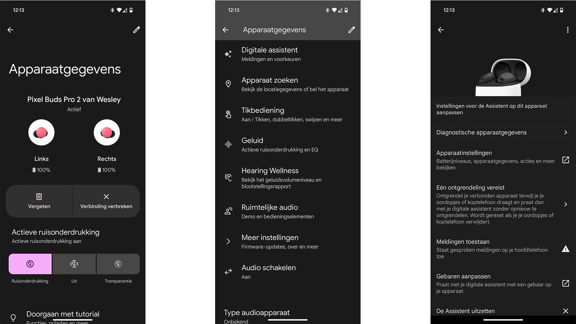 Voordat we dieper ingaan op de audiokwaliteit, bekijken we eerst een aantal belangrijke eigenschappen. Zo is de bluetoothversie verhoogd naar 5.4 en kun je via de – standaard op Pixel-telefoons geïnstalleerde – app veel dingen instellen. Denk dan aan Google Gemini (die net zo bruikbaar is als op smartphones), vooraf ingestelde geluidsmodi en een volledige equalizer (met vijf punten) en ruimtelijke audio (een functie die nu alleen op Pixel werkt). Ook is er een geluidsrapport beschikbaar, waarmee je de geluidsblootstelling meet. Superhandig.