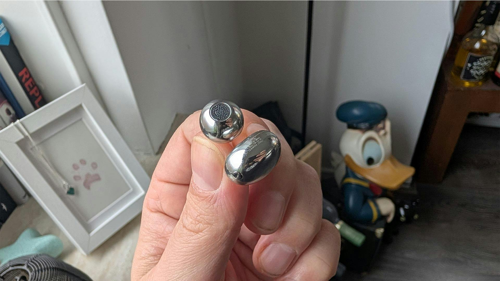 Dat gezegd hebbende zijn we minder te spreken over de fysieke bediening. Het is fijn dat je kunt vegen en tikken, maar juist dat tikken op de dunne rand (de C-brug) werkt minder betrouwbaar dan je hoopt. Eén tik doet gelukkig niets, want die maak je soms al per ongeluk. Alleen: als je wél bewust een tik- of drukbeweging probeert te doen, pakt de brug dat lang niet altijd. Of je nu net te zacht drukt of net niet snel genoeg bent, het resultaat is hetzelfde: we grepen uiteindelijk toch steeds naar onze smartphone om te pauzeren, te skippen of het volume aan te passen.