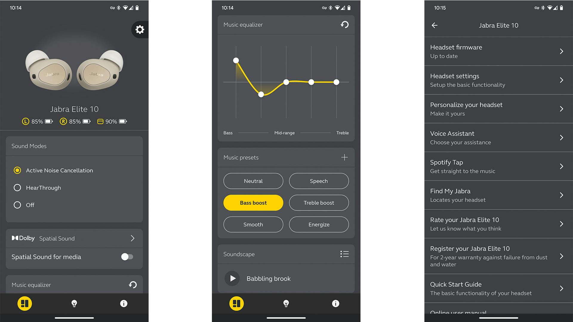 Mocht je niet bekend zijn met de recente topmodellen, dan heb je daar waarschijnlijk wat minder last van. Over het algemeen is de Jabra Elite 10 in staat een gebalanceerd en zuiver geluid te produceren. In de neutrale stand is de basweergave subtiel en ondersteunend, en niet overdreven aanwezig. Je krijgt ook niet snel het idee dat de hogere tonen worden afgemeten, waardoor je favoriete muziek ontzettend aantrekkelijk klinkt. De soundstage is warm en helder, maar mist ook duidelijk een bepaalde kracht. Er zit geen oompf achter bepaalde dreunen, terwijl je die misschien wel verwacht.