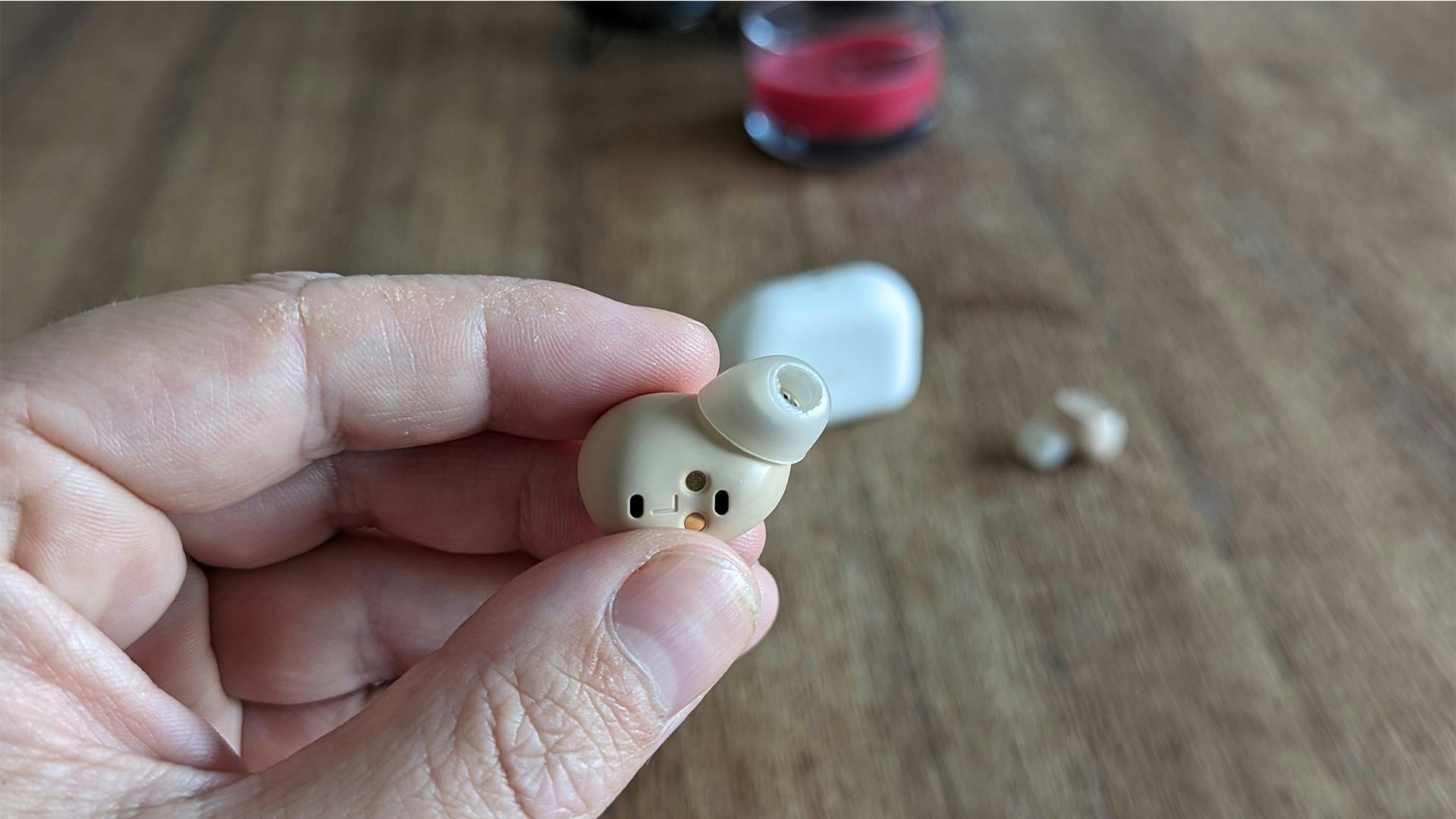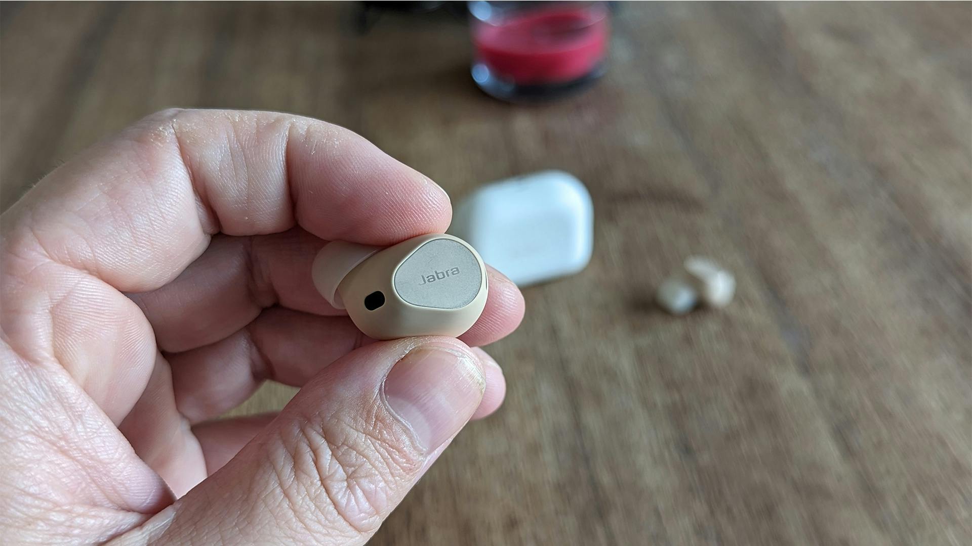 Wanneer je een setje oordoppen recenseert, draag je ze waarschijnlijk net wat langer en vaker dan de gemiddelde gebruiker. Je test daarmee niet alleen het geluid, maar ook het draagcomfort, en vooral dat laatste valt nu op. Want na de Jabra Elite 10 uren te hebben gedragen, is het opmerkelijk hoe comfortabel deze dopjes zitten en ook blijven zitten. Je ervaart geen pijn wanneer je ze lange tijdachter elkaar draagt. Dat komt door de afwijkende vorm van de siliconen dopjes. Die zijn wat smaller en korter dan bij de concurrentie, waardoor ze minder diep het oor in gaan.