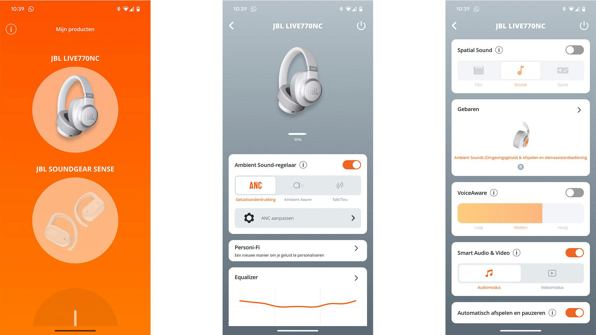 Onderaan de streep moeten we opmerken dat de verschillen tussen de eerdergenoemde Sony en de JBL Live 770NC niet heel groot zijn. De Sony heeft betere, algemene audioprestaties door de indrukwekkende chipset, maar de JBL zit veel beter (en blijft lang lekker zitten). De JBL heeft daarnaast een veel langere accuduur, terwijl de actieve ruisonderdrukking van gelijkwaardig niveau is. Verder beschikken ze allebei over een handige equalizer en merken we dat de ruisonderdrukking geen negatieve invloed heeft op de audioprestaties.