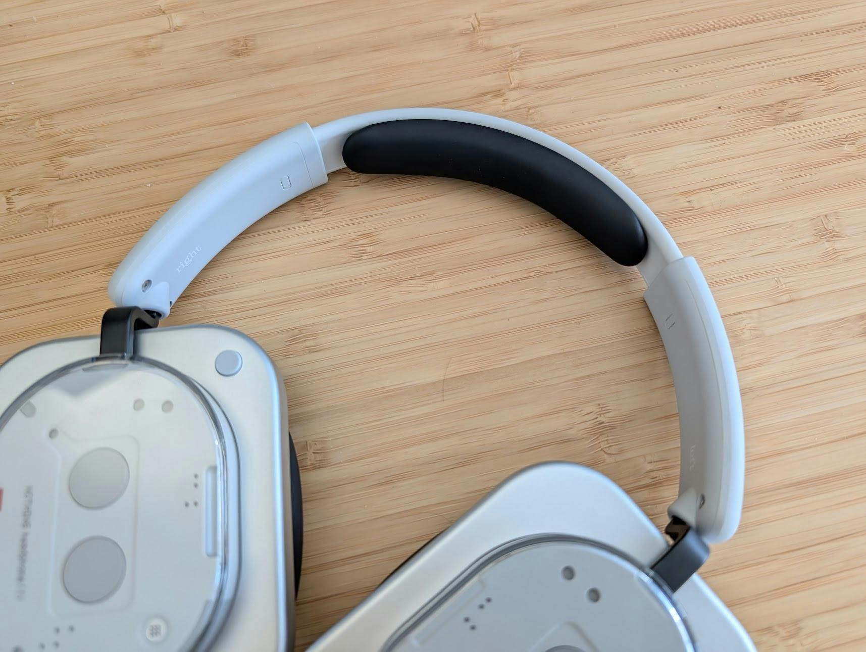Dat ongemakkelijke gevoel heeft niet alleen met het bijzondere uiterlijk te maken, maar ook met het ontwerp zelf. De Nothing-hoofdtelefoon is met 329 gram tientallen grammen zwaarder dan concurrerende modellen als de Sony WH-1000XM6 (254 gram) en de JBL Tour One M3 (278 gram). Dat merken we duidelijk op ons hoofd. De hoofdtelefoon voelt gewoon zwaar aan. Wat niet meehelpt, is de relatief dunne hoofdband. Die drukt al snel op de bovenkant van ons hoofd. De oorkussens bevallen ons ook minder goed dan die van de concurrentie. De Headphone (1) sluit onze oren nogal klemmend af, waardoor we snel warme oren krijgen.