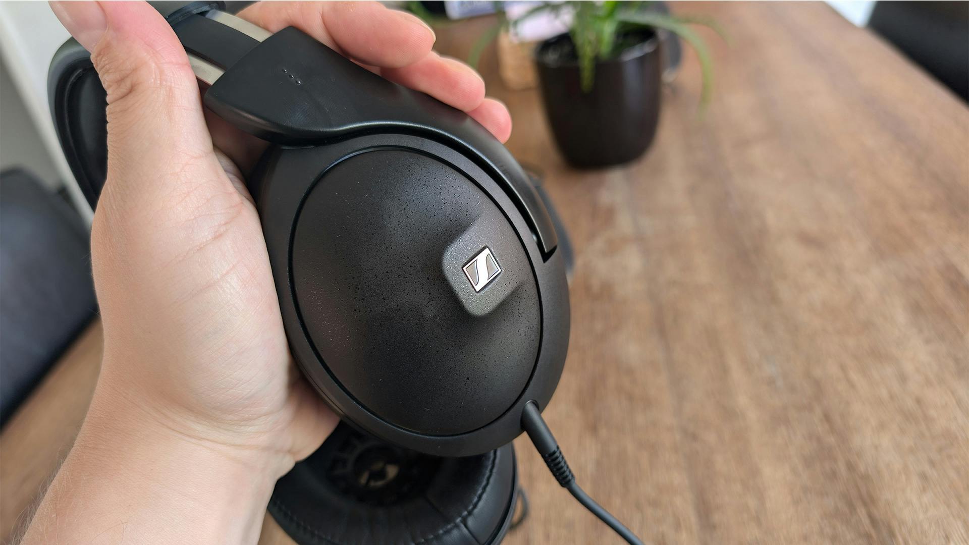 Hoewel de bouwkwaliteit zeer solide is, vinden we toch dat de Sennheiser HD 620S wat goedkoop oogt. Sennheiser vindt zelf dat dit model beschikt over een tijdloos ontwerp, maar de spikkels op de oorcups (zie foto hierboven) geven – wanneer het licht verkeerd valt – de indruk dat de cups vies zijn. De band en oorcups zijn gelukkig wel flexibel en comfortabel genoeg voor lange draagsessies, al moet je er rekening mee houden dat je oren wel echt warm kunnen worden. Dat komt doordat de cups dus geen lucht loslaten, en omdat ze gemaakt zijn van nepleer. Dat houdt warmte vast.